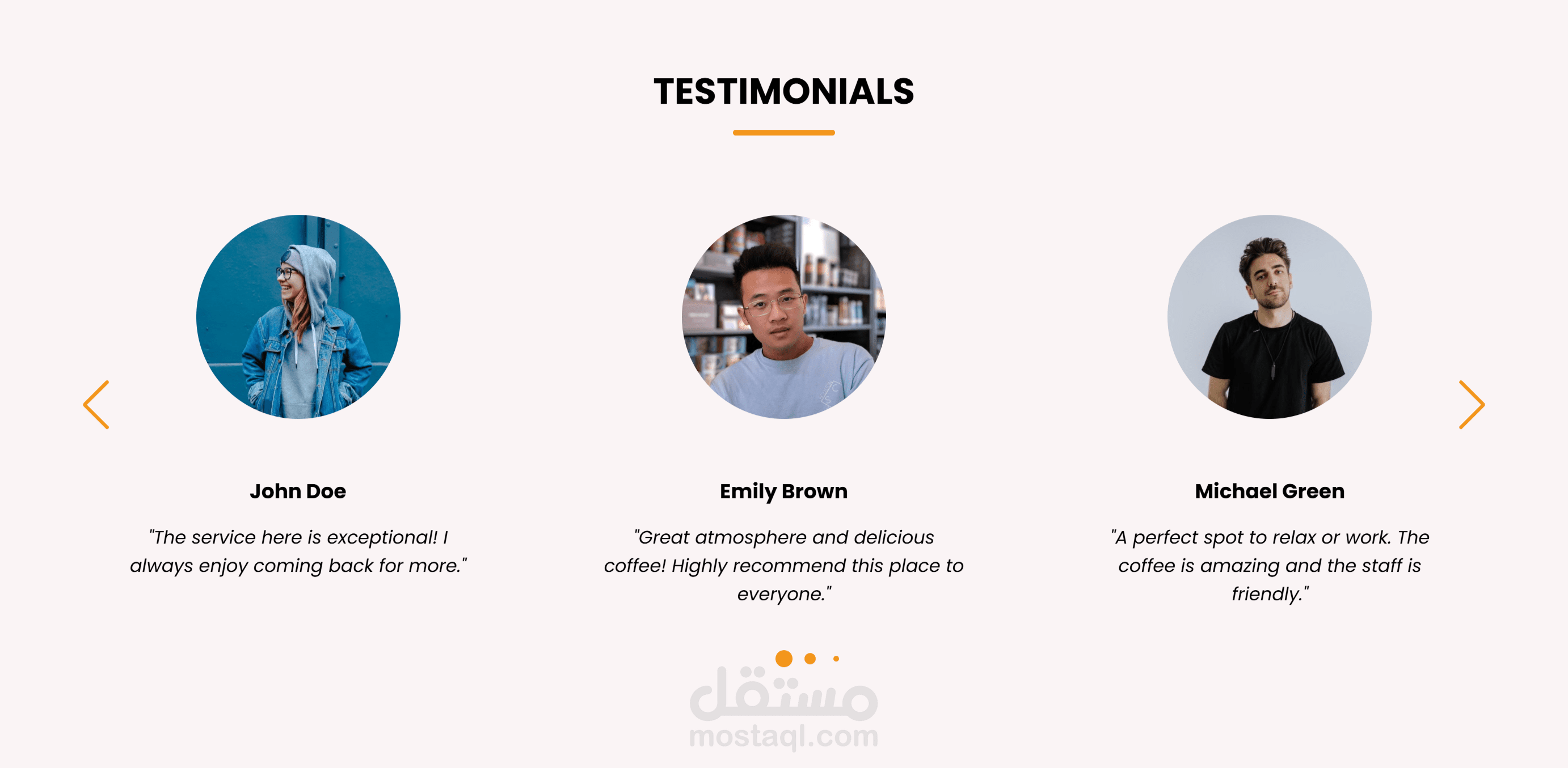 - سلايدر آراء العملاء: باستخدام Swiper.js لعرض التقييمات بشكل تفاعلي.