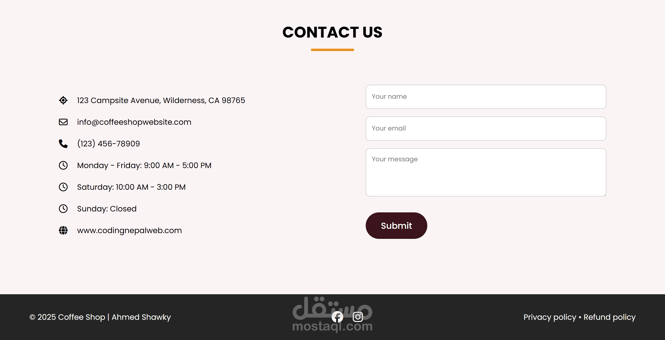 - نموذج تواصل فعال: لاستقبال استفسارات العملاء بسهولة.