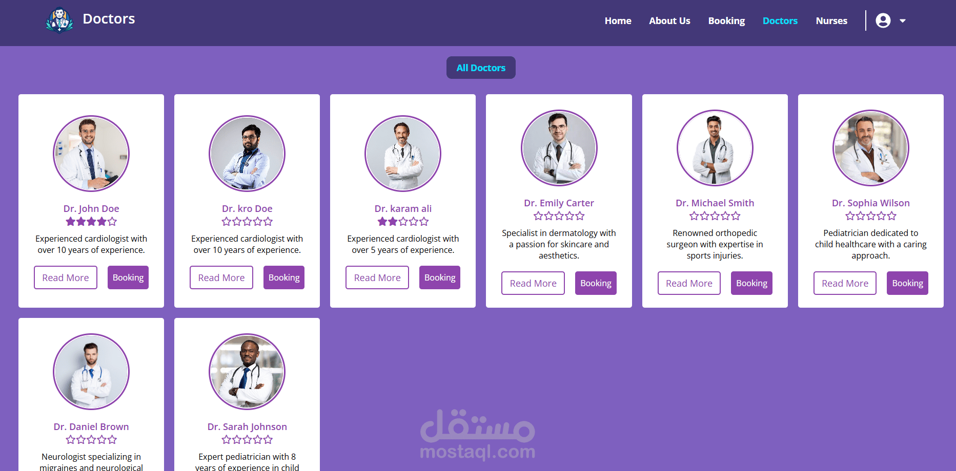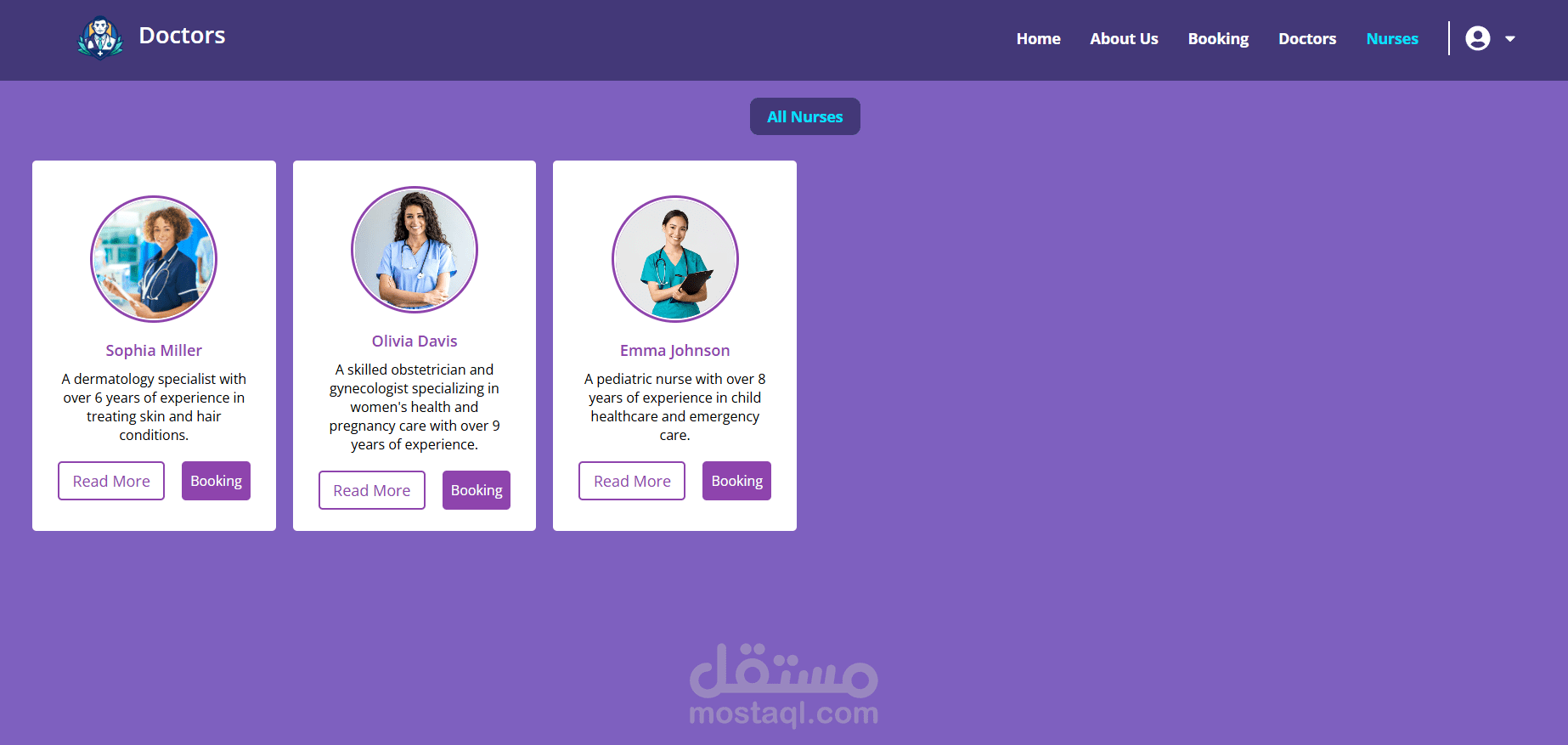 - إدارة الأطباء والممرضين: ملفات شخصية وحجوزات مواعيد منظمة.