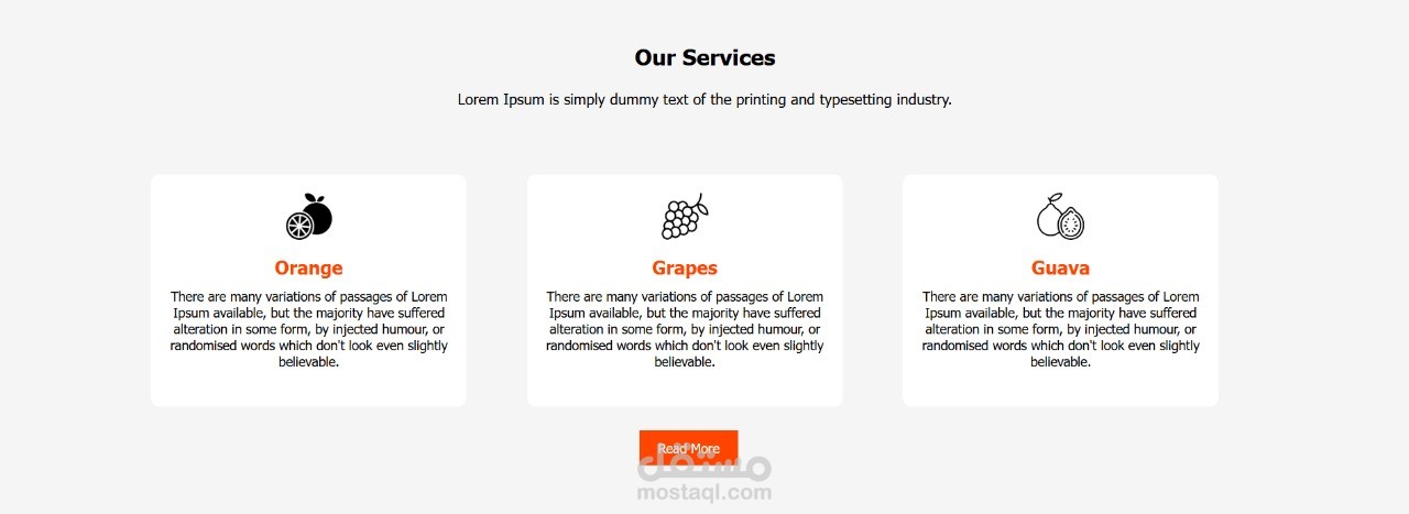 صفحة هبوط لمنصة رقمية تعرض قائمة الفواكه الخاصة بالمتجر، بالإضافة إلى معلومات حوله مثل العنوان وساعات العمل وطريقة التواصل. يحتوي الموقع على صفحات رئيسية مثل: