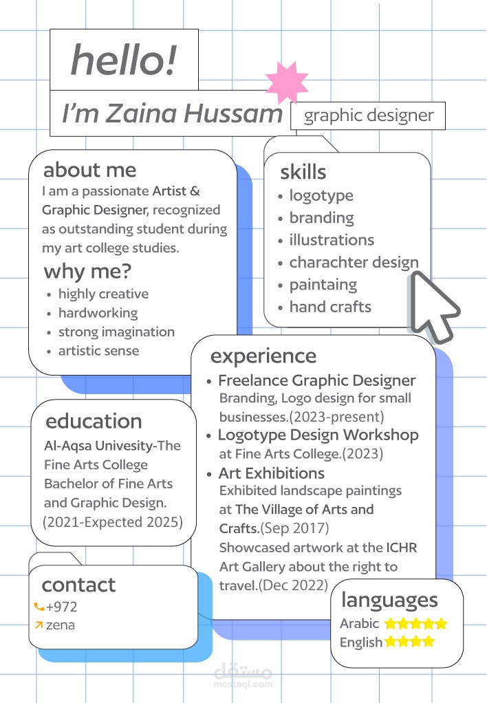 تصميمي لسيرة ذاتية شخصية تعكس أسلوبي في التصميم.