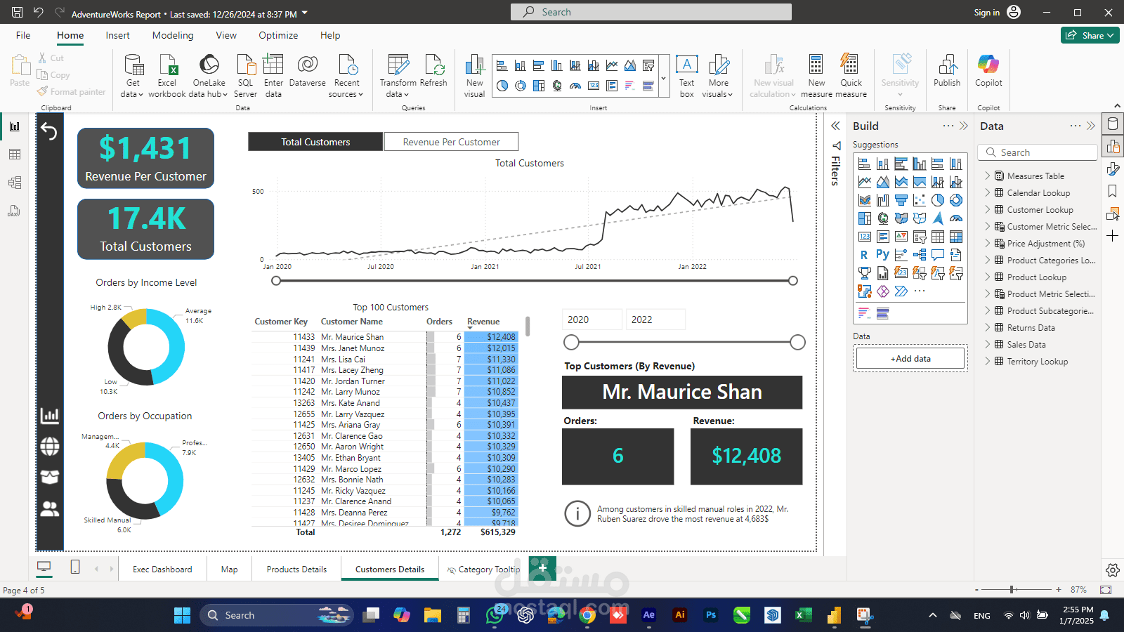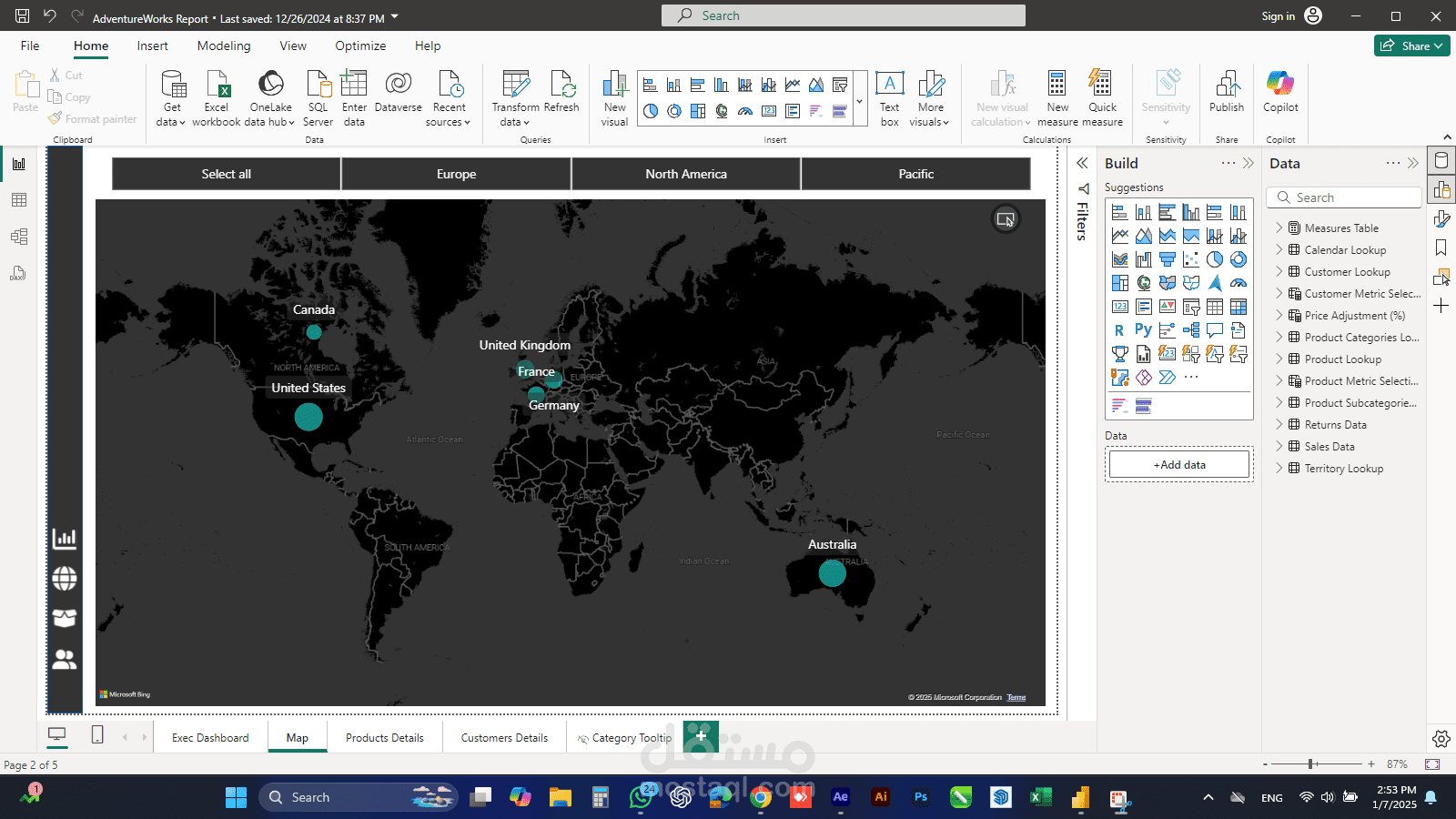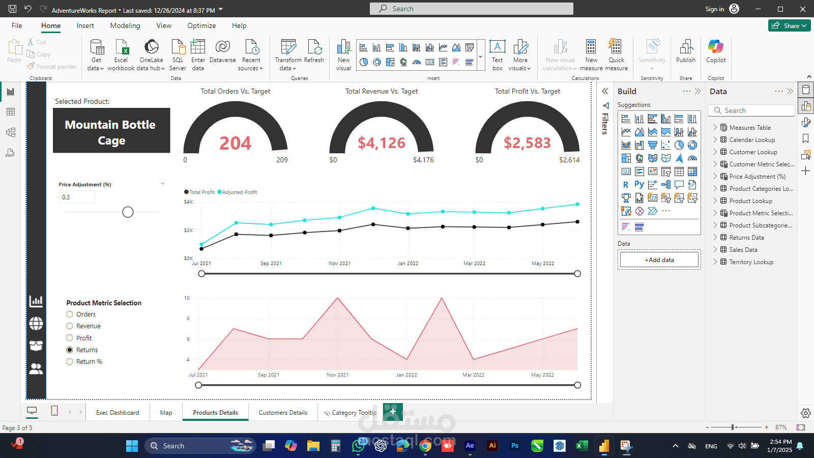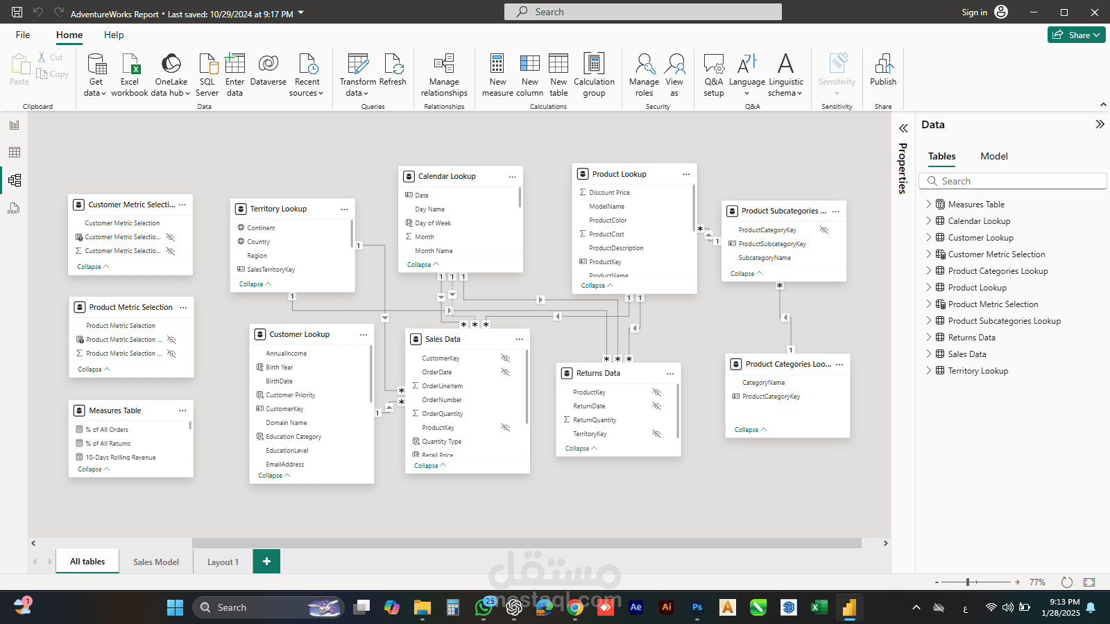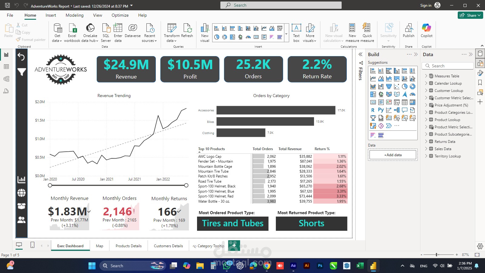 مشروع تحليل قاعدة بيانات شركة Adventure works باستخدام برنامجي Power BI & Excel