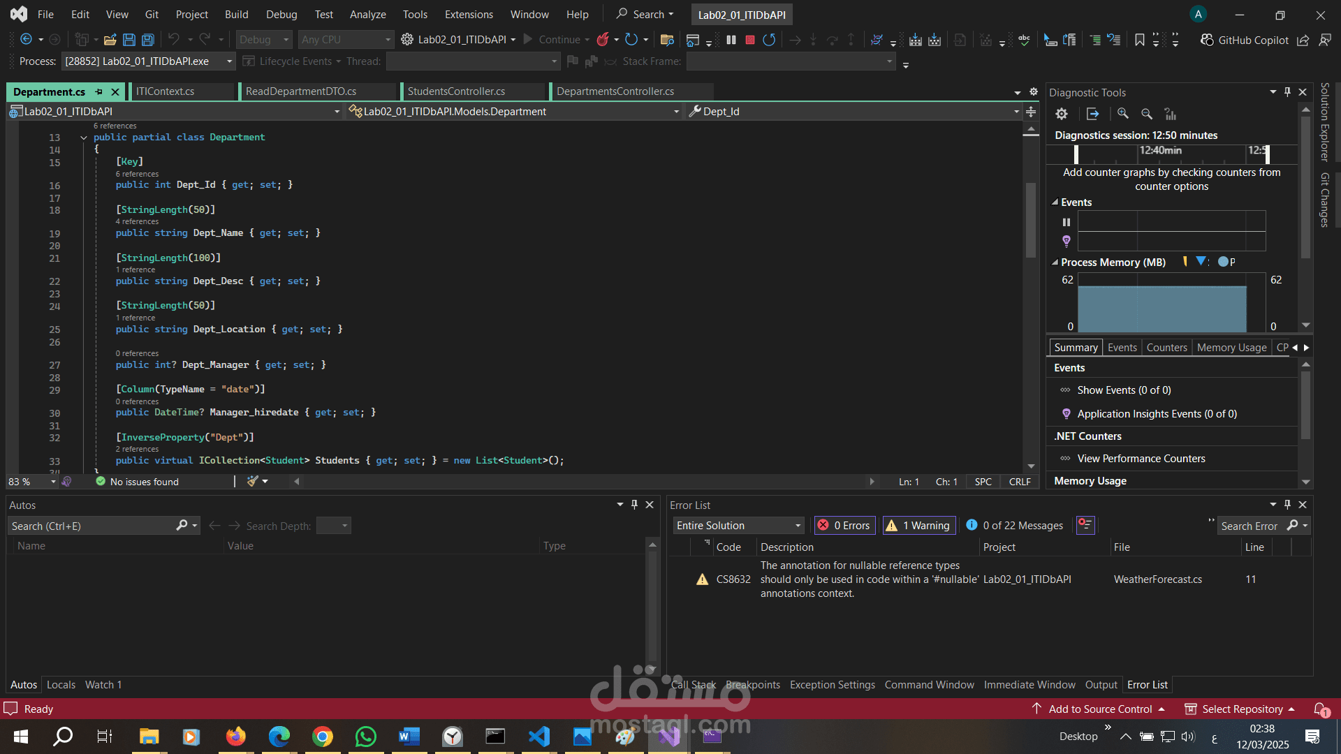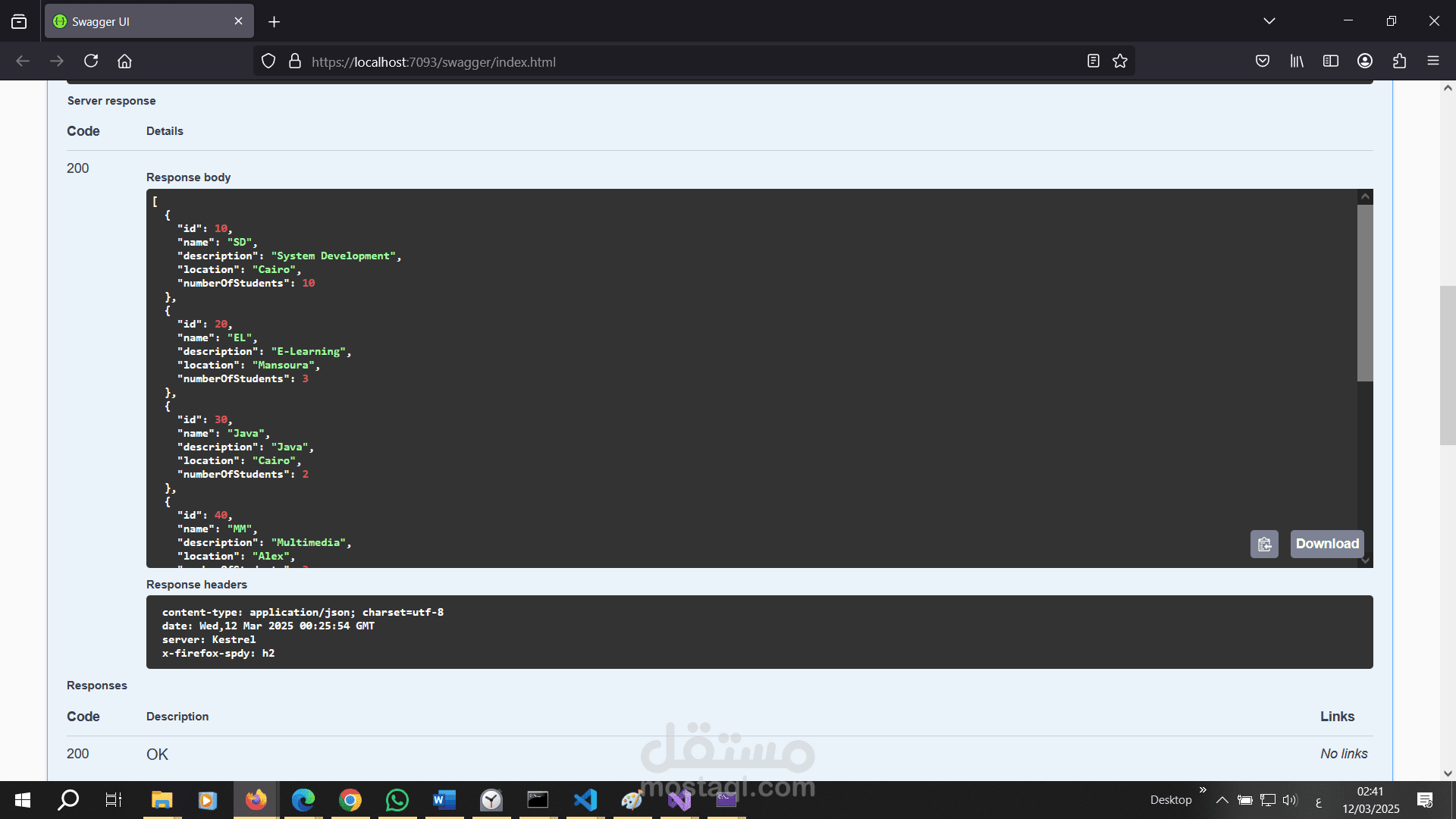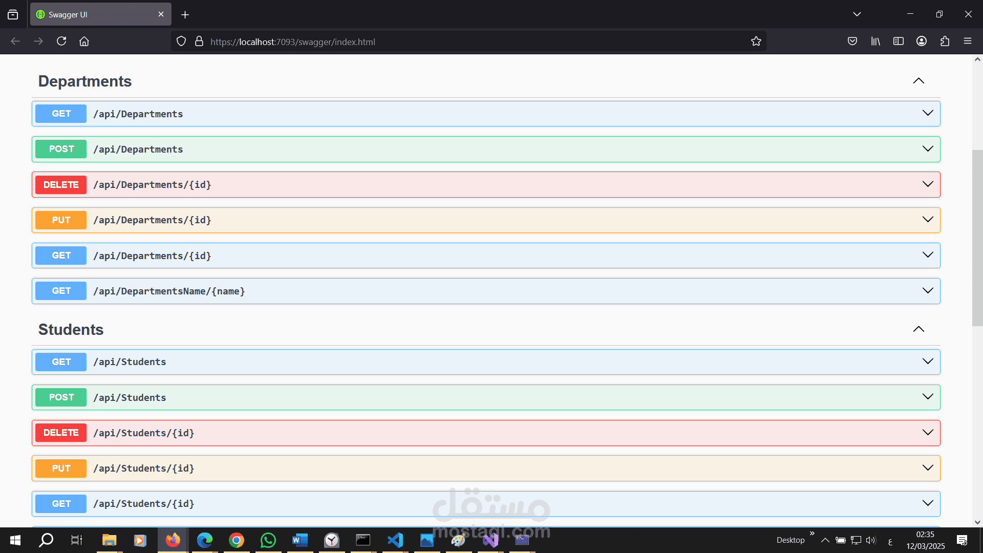 هو تطبيق ويب يعتمد على بنية RESTful APIs لإدارة البيانات المتعلقة بالطلاب (Students) والأقسام (Departments). تم بناء المشروع باستخدام إطار عمل ASP.NET Core مع استخدام Entity Framework Core لإنشاء قاعدة البيانات وإدارتها. يهدف هذا المشروع إلى توفير واجهة برمجية فعالة وسهلة الاستخدام للتعامل مع البيانات بشكل آمن ومنظم.