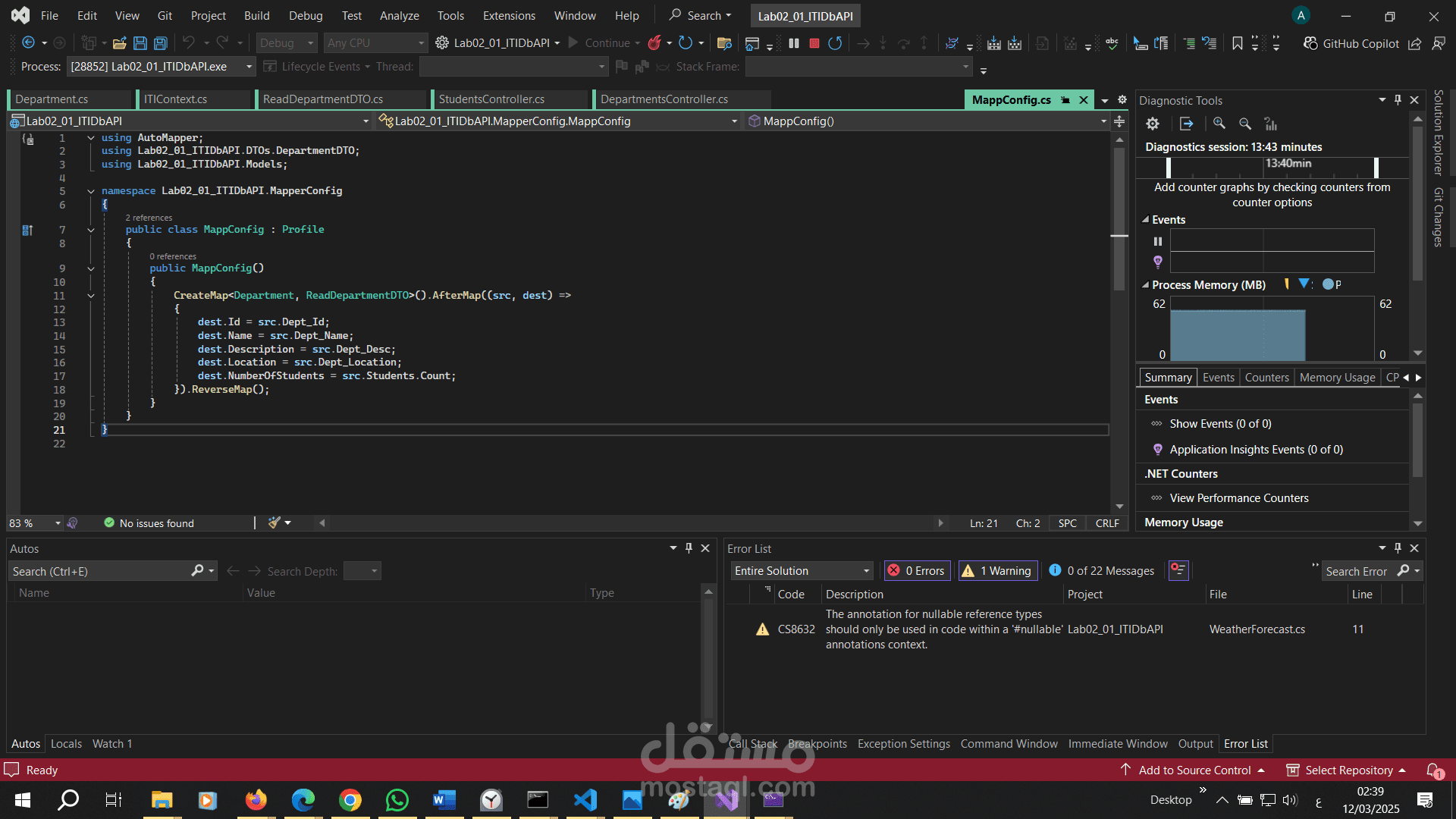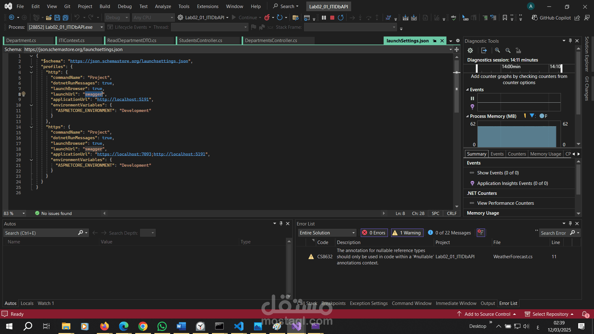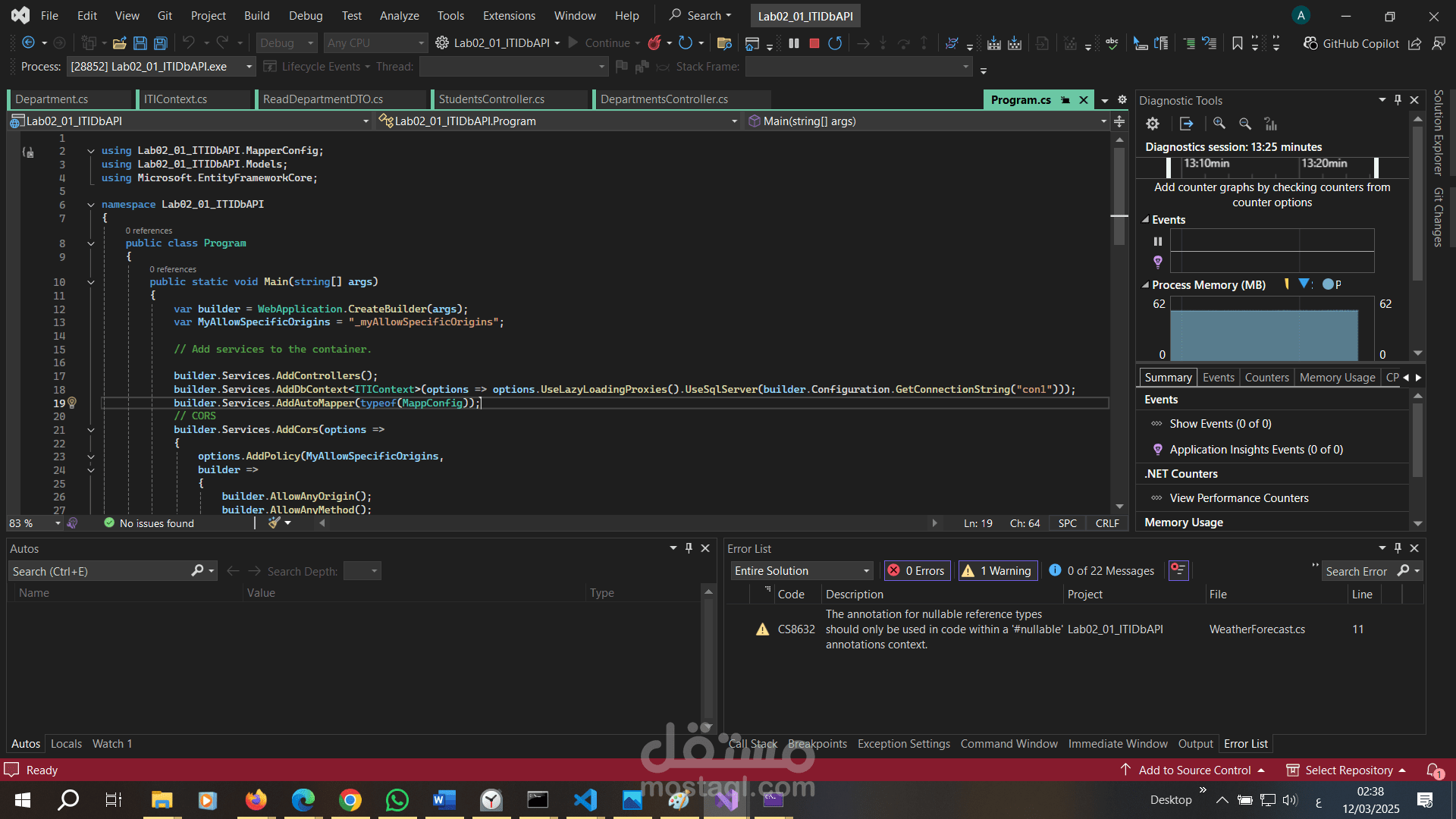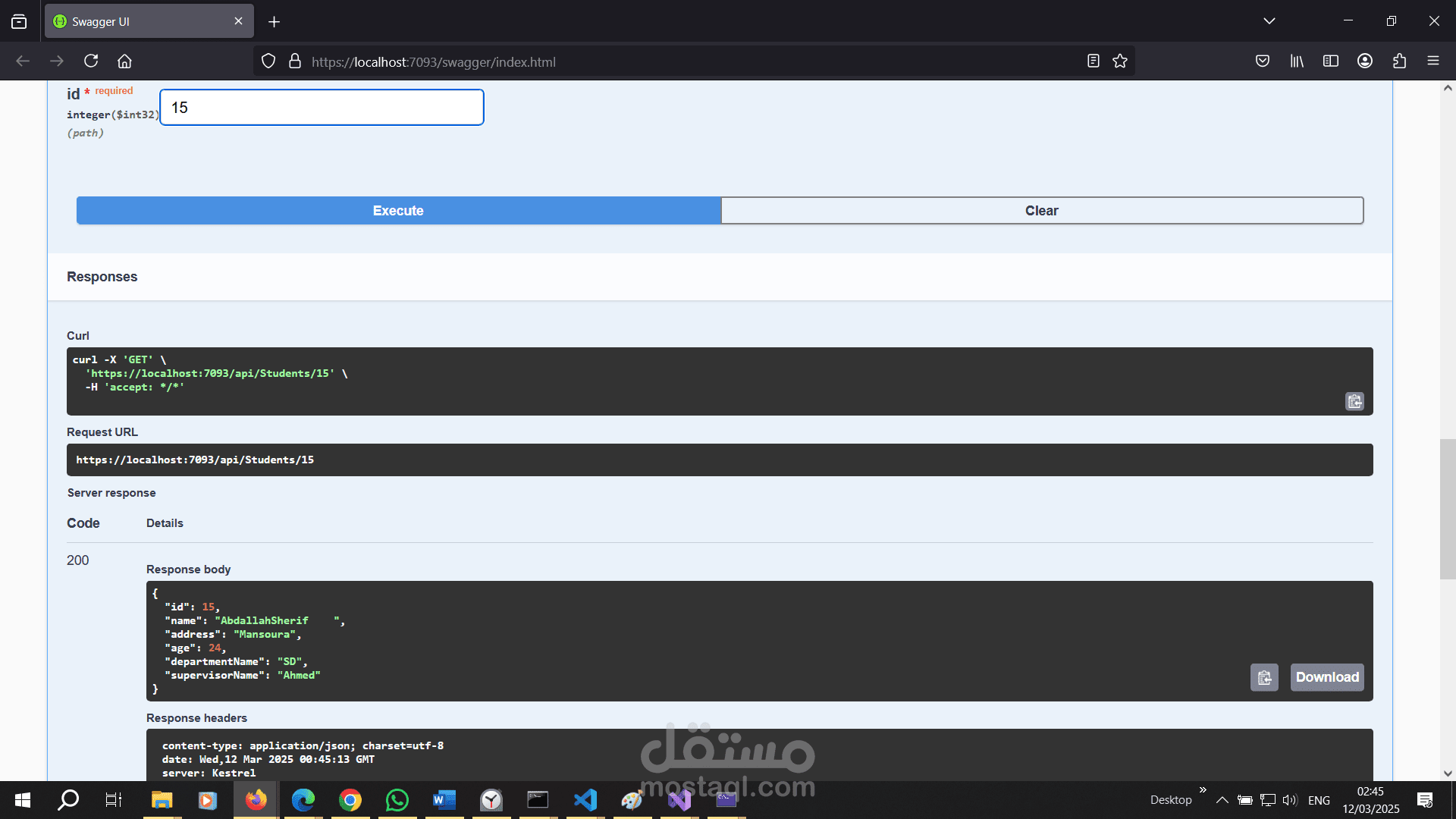 هو تطبيق ويب يعتمد على بنية RESTful APIs لإدارة البيانات المتعلقة بالطلاب (Students) والأقسام (Departments). تم بناء المشروع باستخدام إطار عمل ASP.NET Core مع استخدام Entity Framework Core لإنشاء قاعدة البيانات وإدارتها. يهدف هذا المشروع إلى توفير واجهة برمجية فعالة وسهلة الاستخدام للتعامل مع البيانات بشكل آمن ومنظم.