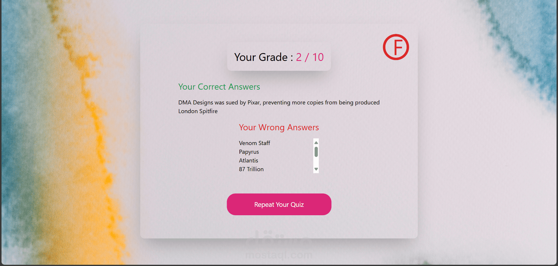 تم الانتهاء من انشاء quiz وتم تسليم ال task واضافتها الي الموقع الرئيسي