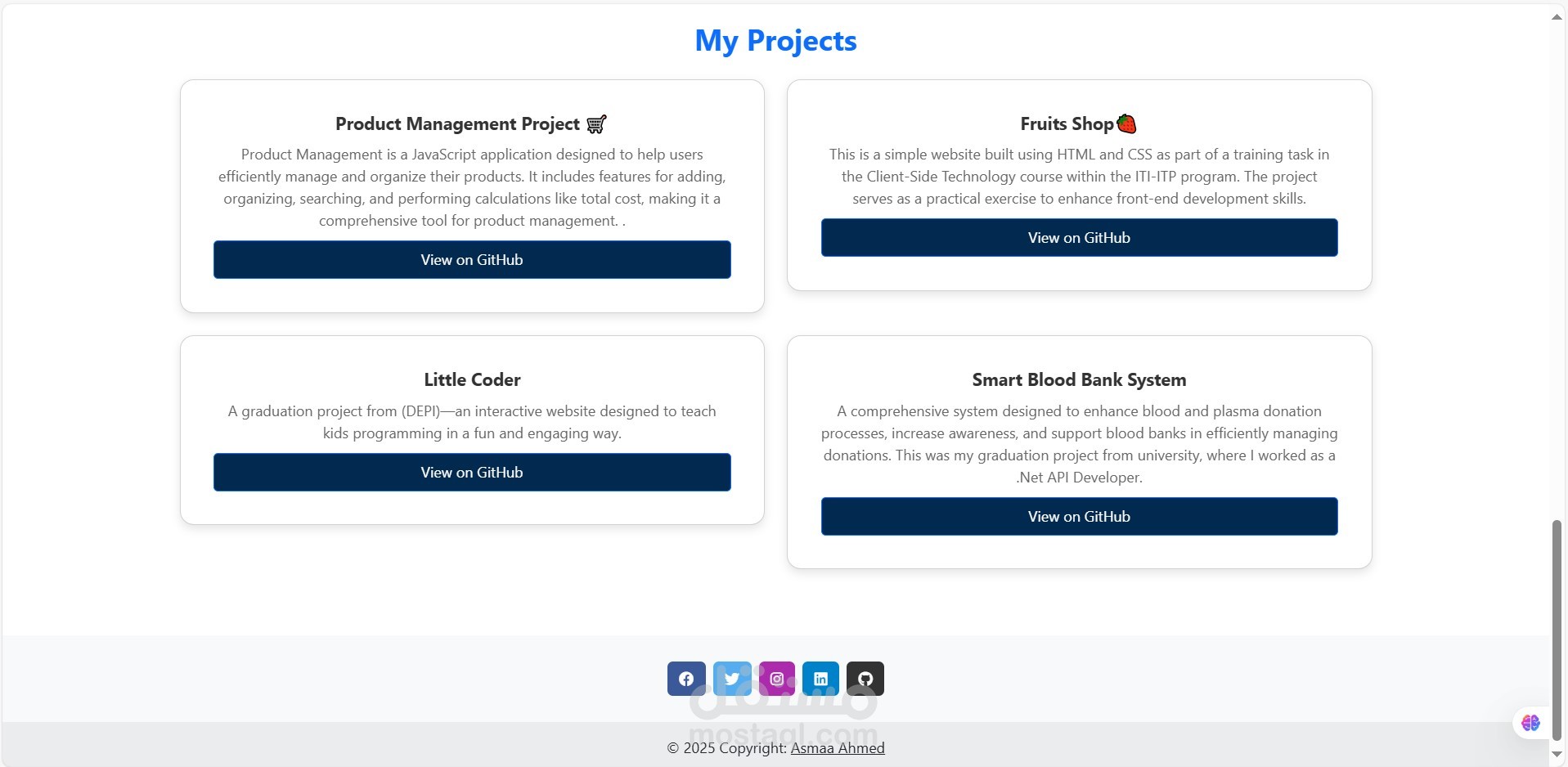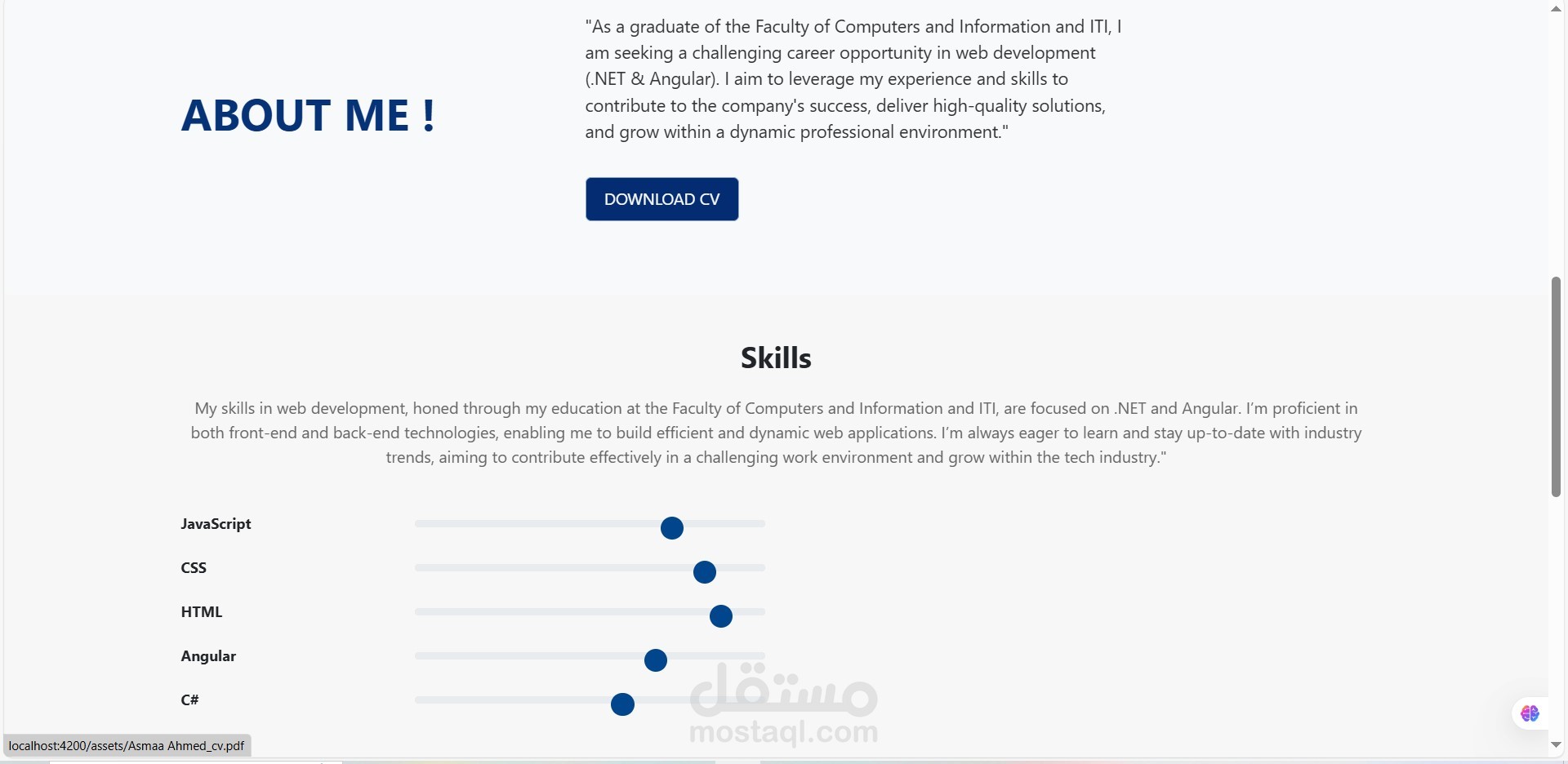 Overview This is a simple portfolio website built using Angular as part of an ITI training task. The project showcases different sections, including personal information, skills, and projects.