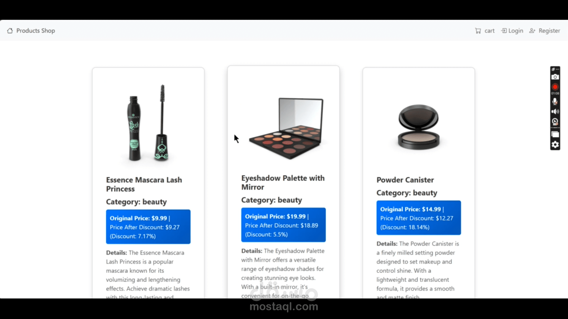 عرض المنتجات مع إمكانية استعراض تفاصيل كل منتج على حدة.