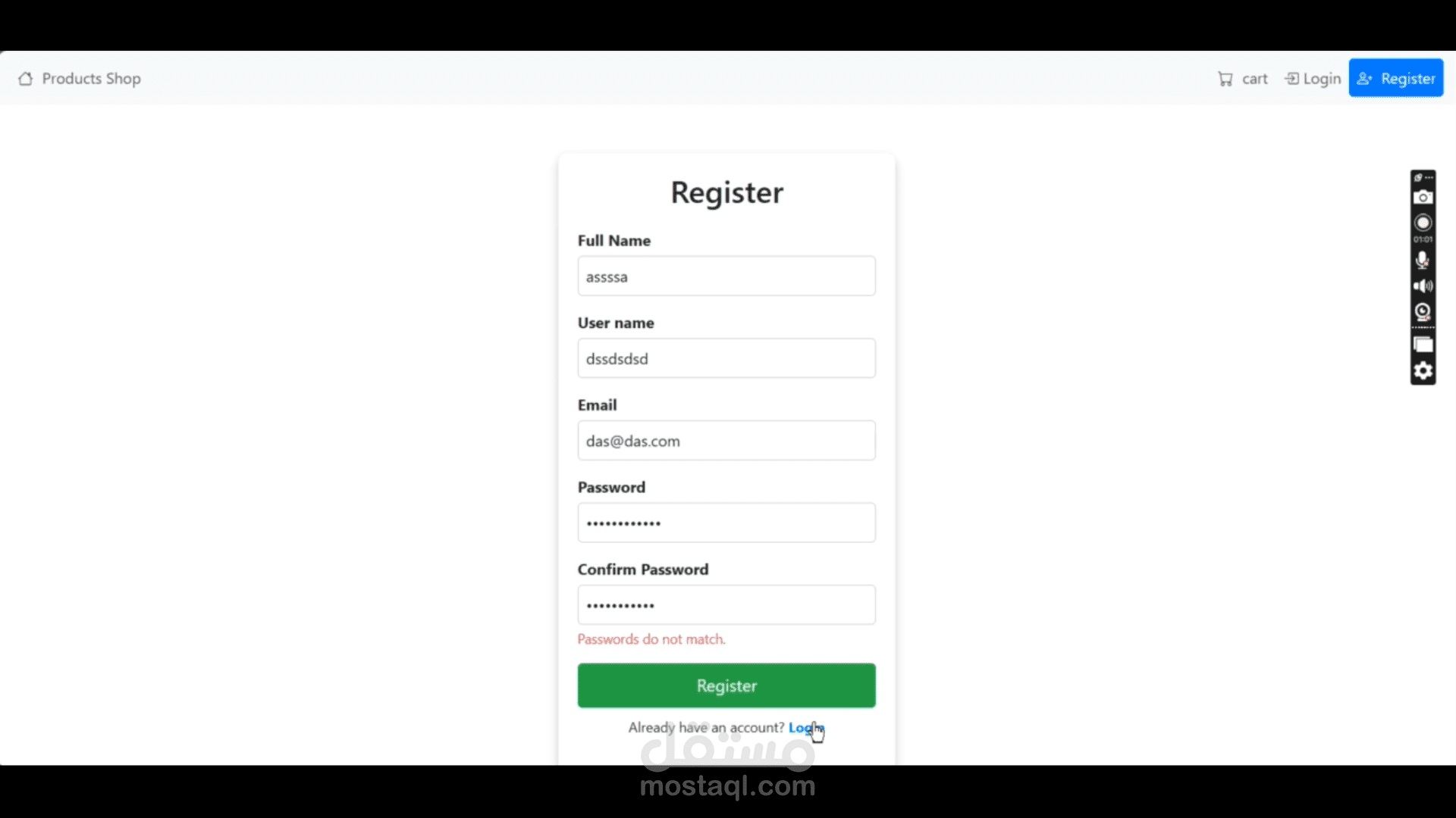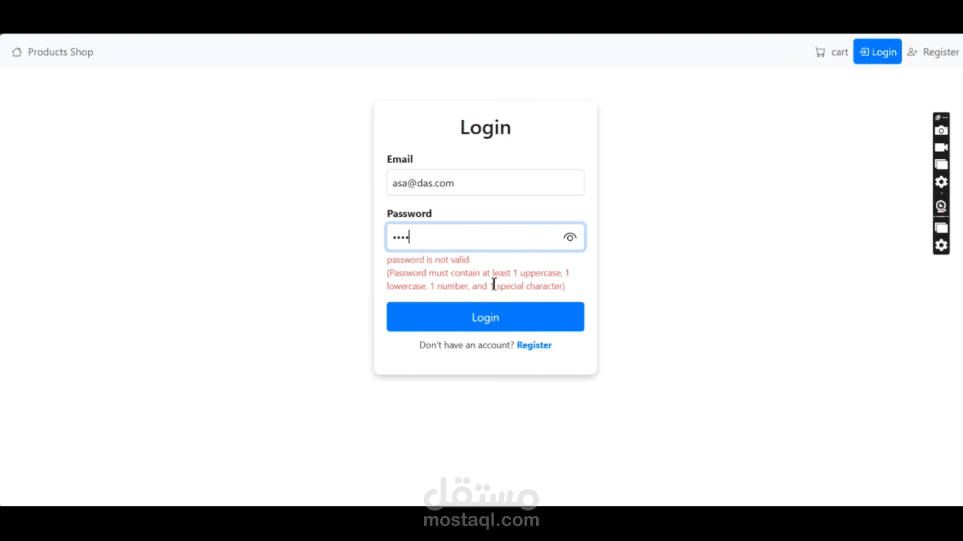 نظام تسجيل الدخول والتسجيل مع تطبيق جميع التحقق من البيانات (Validations) لضمان إدخال معلومات صحيحة وآمنة.