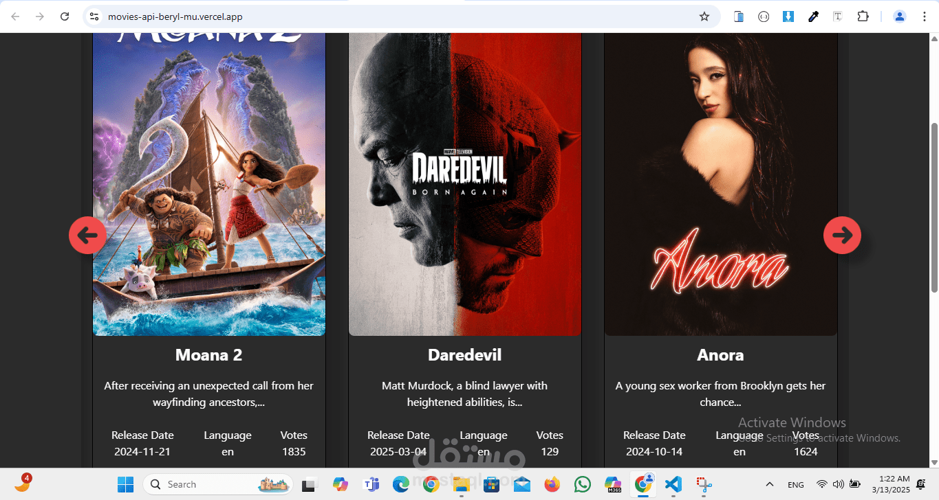 موقع يعرض الأفلام باستخدام themoviedb) API).