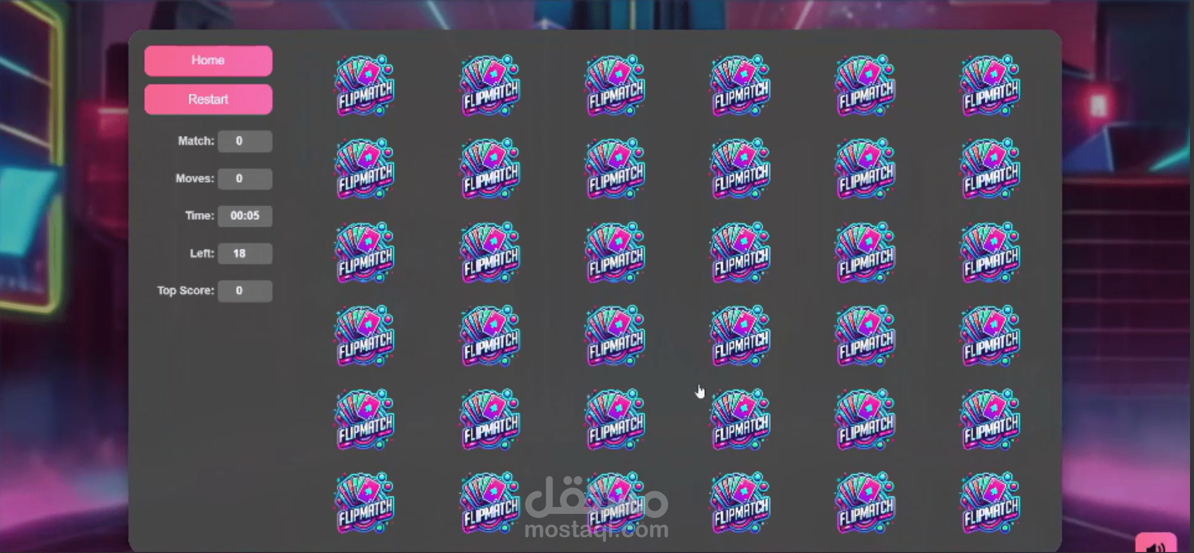 This is an interactive Matching Card Game designed to test and enhance memory skills. The game features three levels of increasing difficulty: