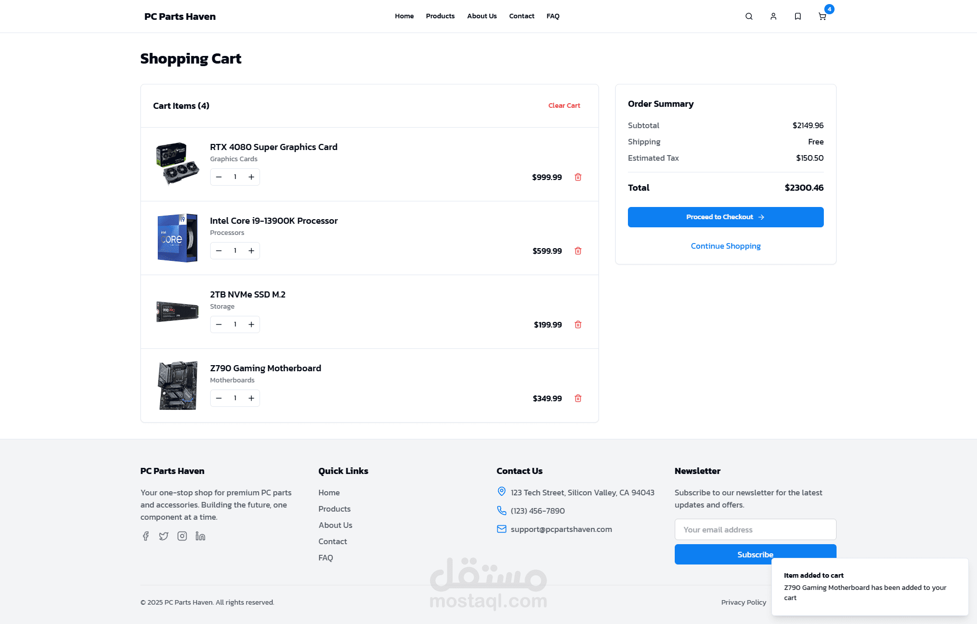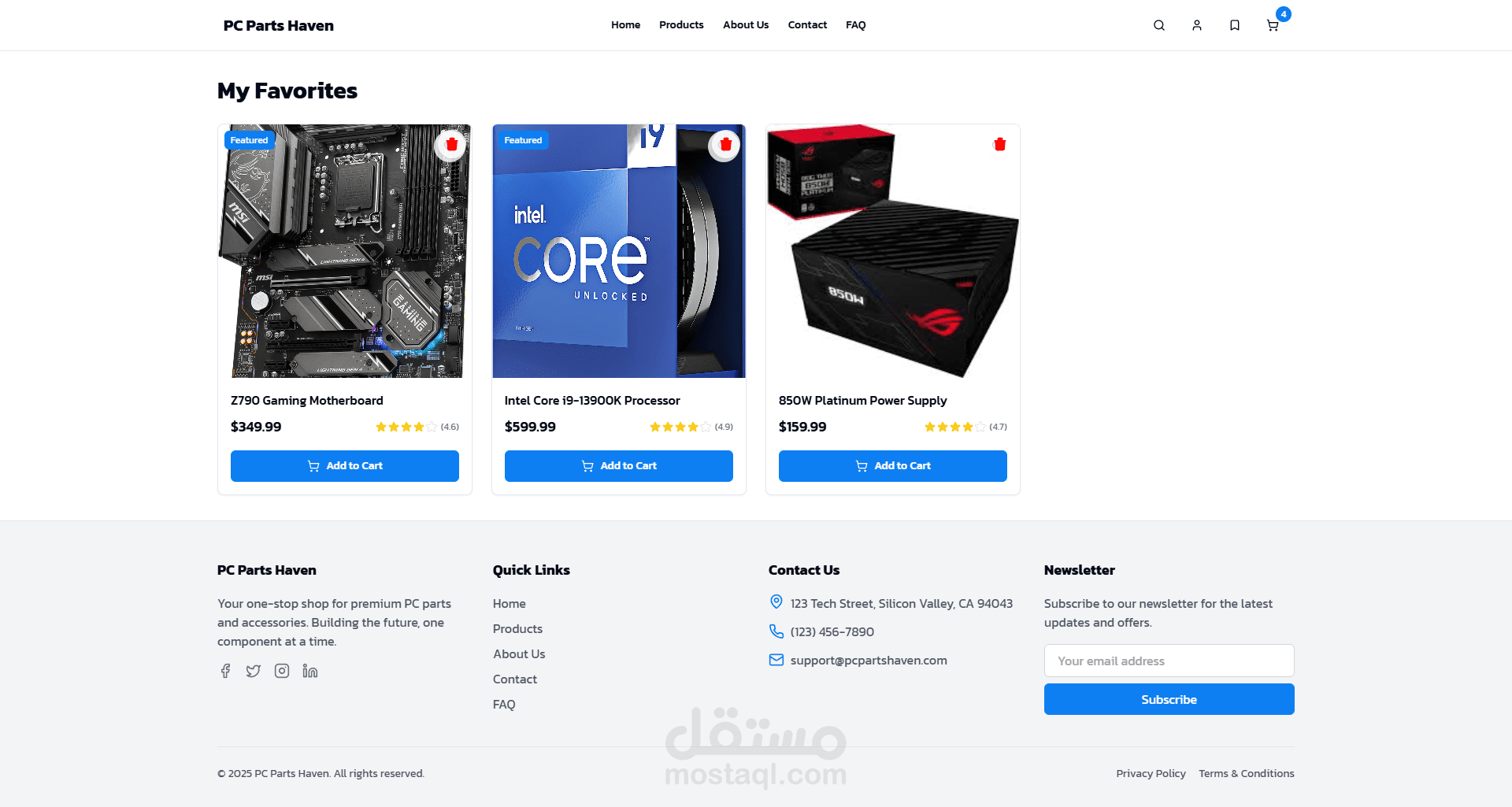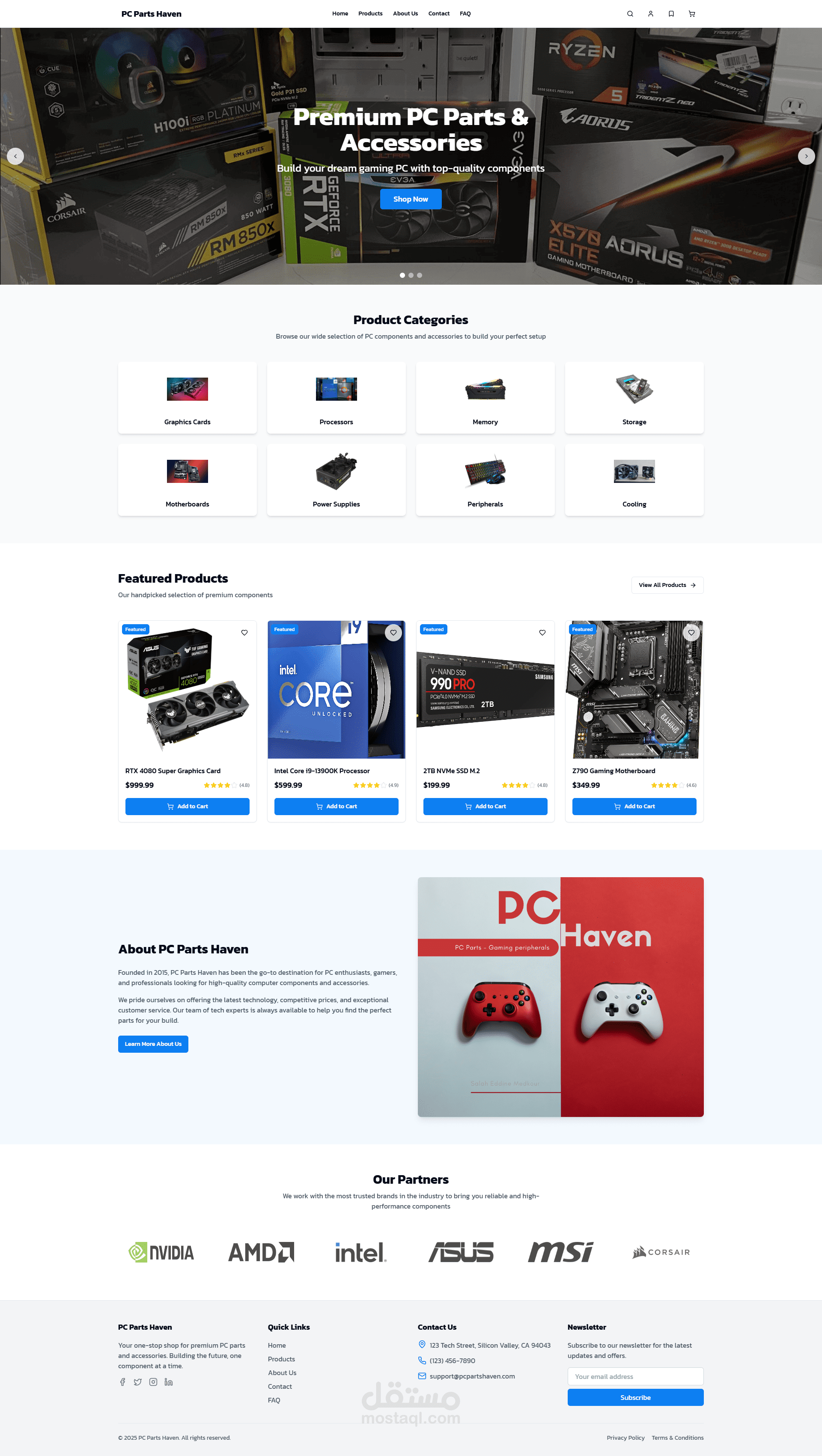 أحببت مشاركة تجربتي في بناء PC-Haven، وهو متجر إلكتروني متكامل لبيع قطع الحواسيب والإكسسوارات. المشروع كان فرصة رائعة لصقل مهاراتي في React، TypeScript، Tailwind CSS، بالإضافة إلى تحسين الأداء والاستجابة عبر مختلف الأجهزة.
