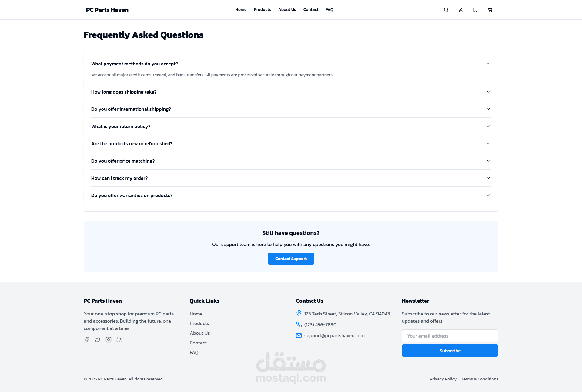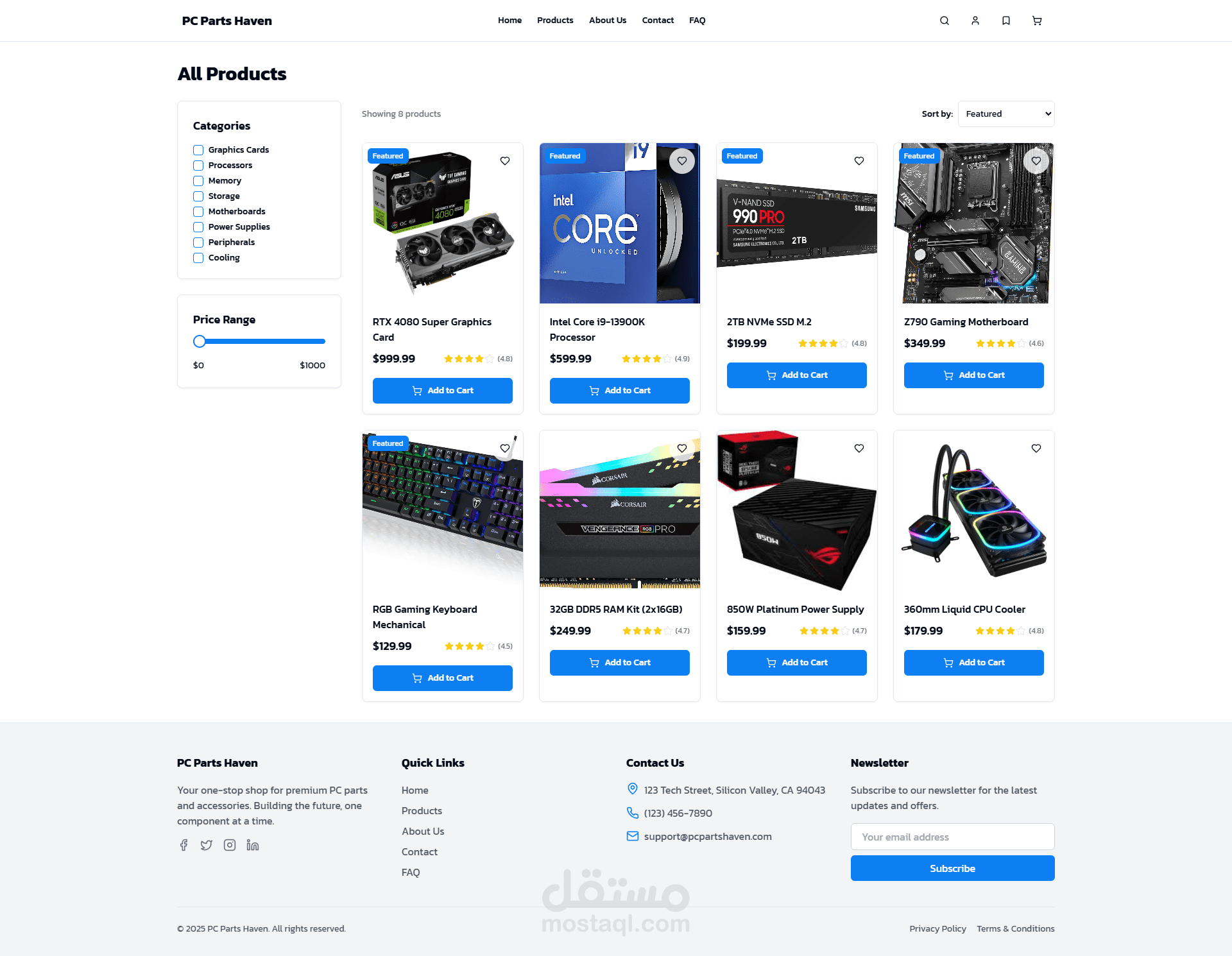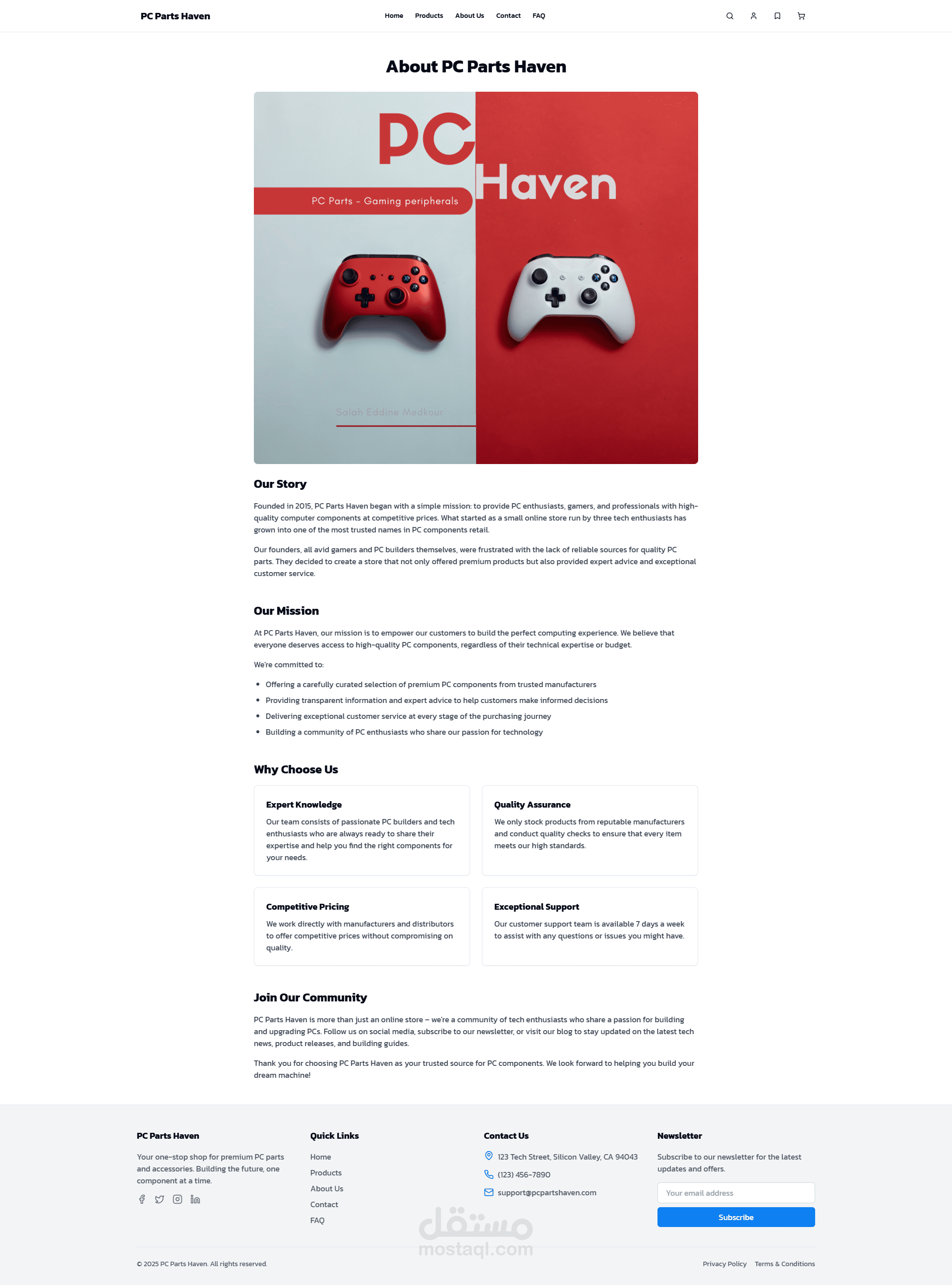 أحببت مشاركة تجربتي في بناء PC-Haven، وهو متجر إلكتروني متكامل لبيع قطع الحواسيب والإكسسوارات. المشروع كان فرصة رائعة لصقل مهاراتي في React، TypeScript، Tailwind CSS، بالإضافة إلى تحسين الأداء والاستجابة عبر مختلف الأجهزة.