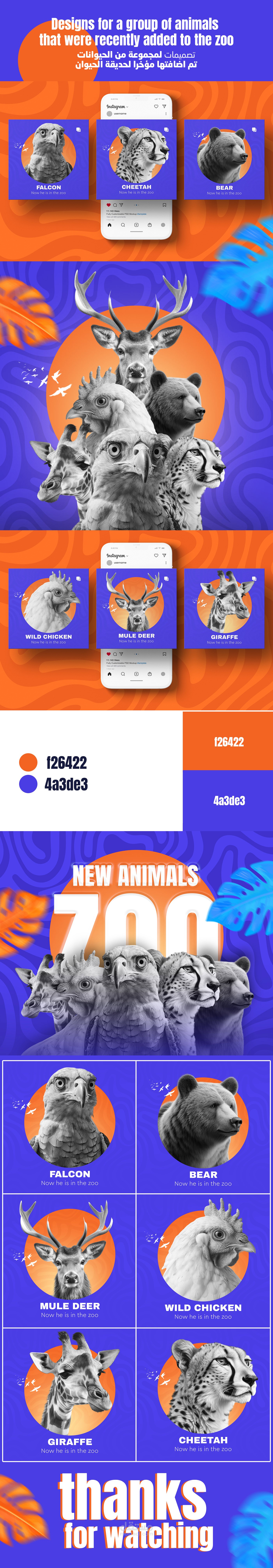 هذا التصميم عبارة عن عرض بصري جذاب لمجموعة من الحيوانات اللي انضمت حديثًا لحديقة الحيوان، بأسلوب عصري ومودرن يناسب حملات التواصل الاجتماعي، خصوصًا إنستجرام!