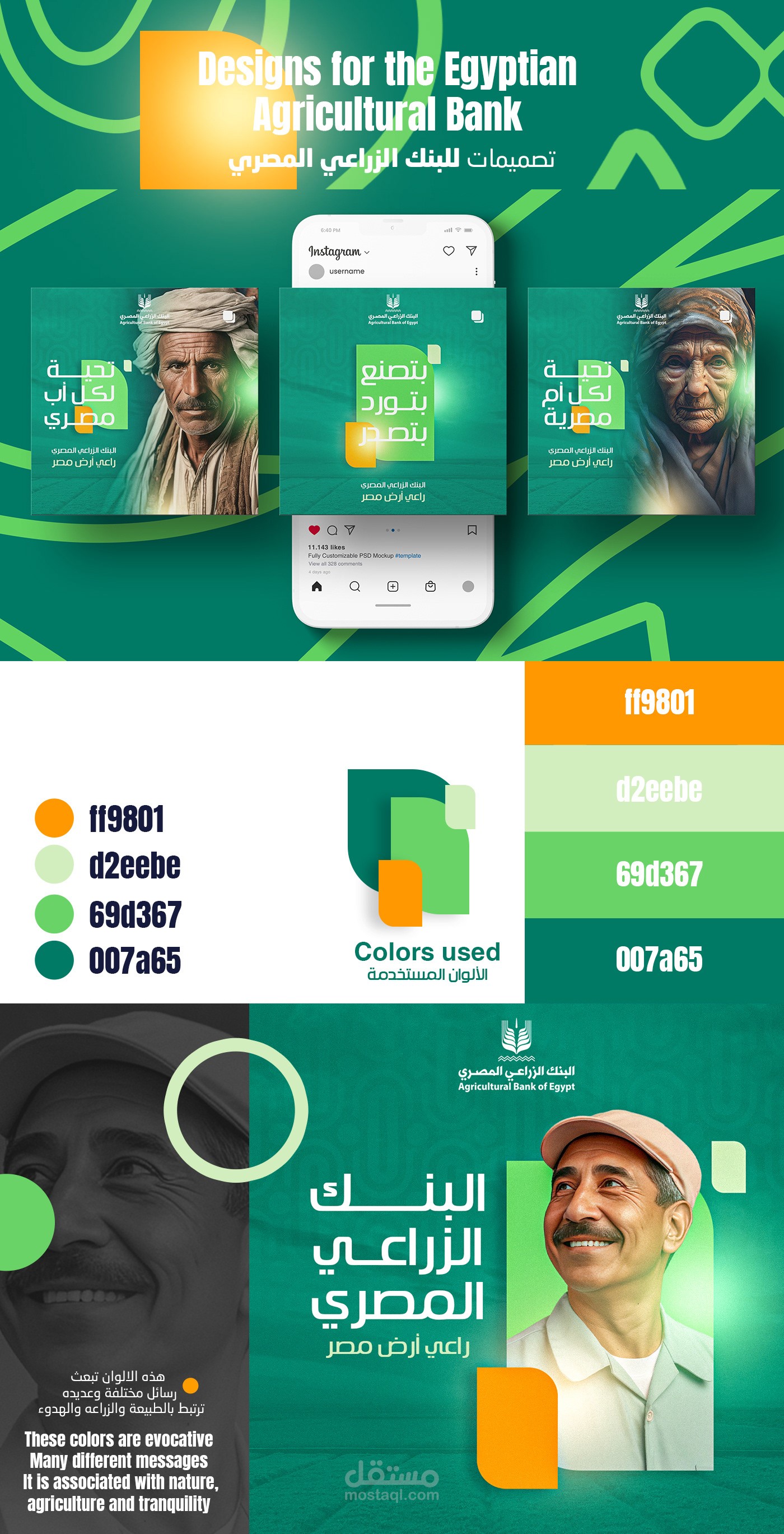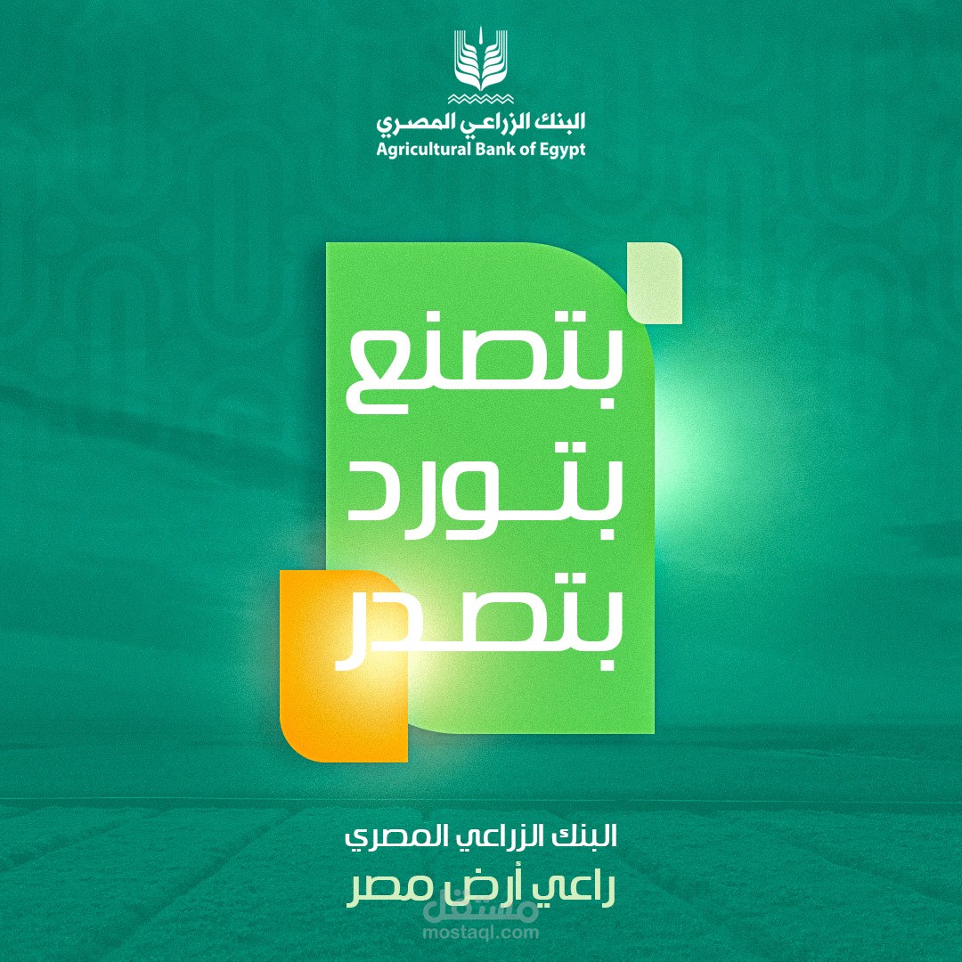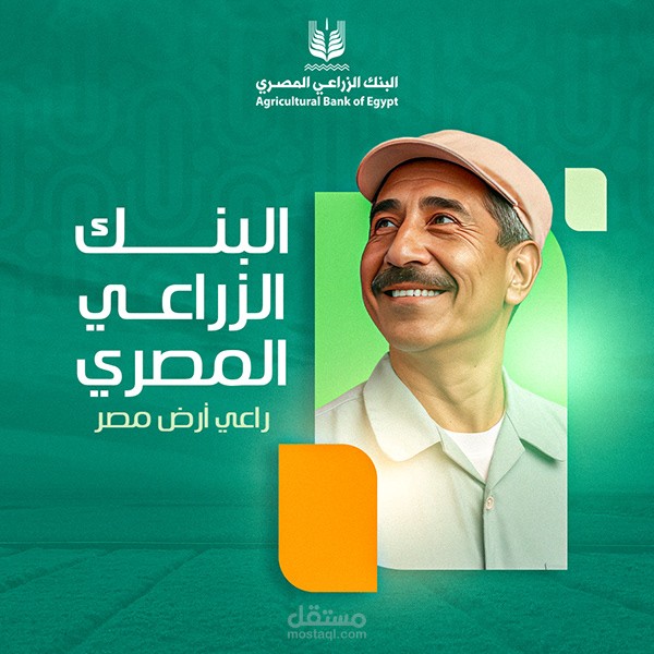 تصميم مخصص لحملة دعائية للبنك الزراعي المصري، هدفه الأساسي تعزيز هوية البنك كـ "راعي أرض مصر"، وتسليط الضوء على دوره الحيوي في دعم الفلاحين والزراعة المصرية .