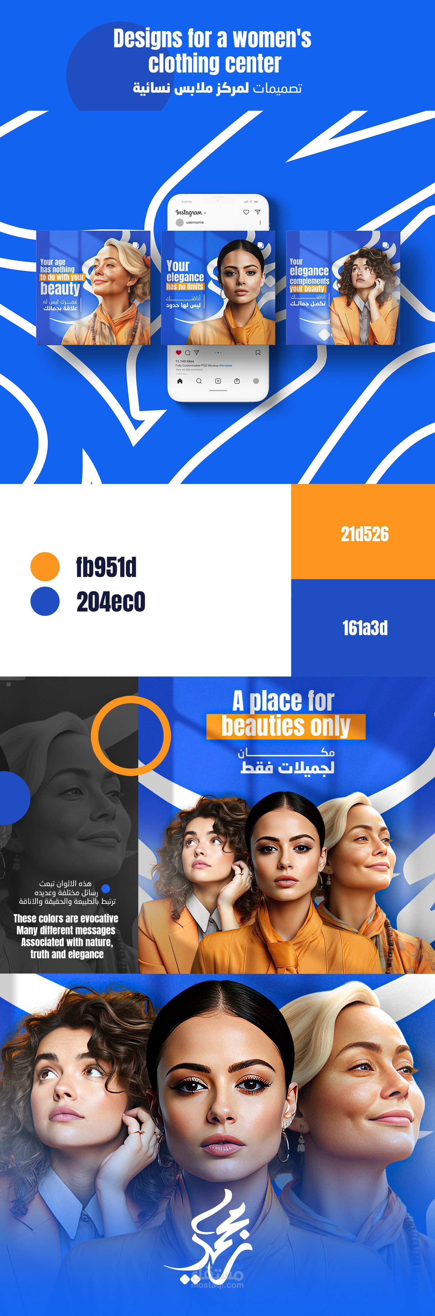 تصميم مخصص لحملة دعائية لمركز ملابس نسائية، هدفه الأساسي إبراز الأناقة والجمال الأنثوي في كل الأعمار، مع التركيز على الثقة بالنفس والتميز في الأزياء .