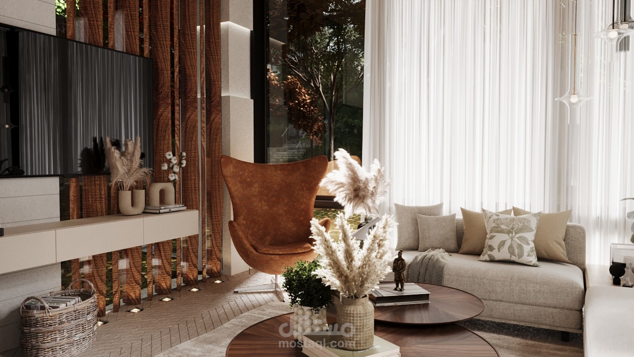 مرحبا بكم في مشروع فيلا في نيو جيزه في مصر و هذا الثري دي الخاص بي جزء التراس في الدور الارضي