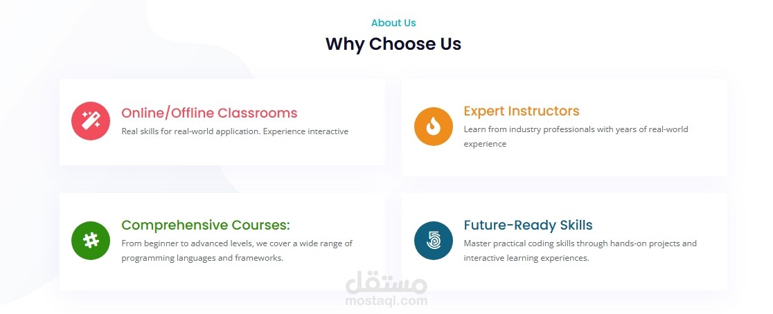 تم تطوير موقع تعليمي يقدّم كورسات برمجية تفاعلية عبر ووردبريس، مع تصميم سهل الاستخدام وتجربة مستخدم مميزة. يتيح الموقع للطلاب تصفح الدورات، التسجيل، ومتابعة تقدمهم عبر لوحة تحكم مخصصة. يعتمد على إضافات تعليمية متخصصة مثل LearnDash، مع إمكانية الدفع الإلكتروني عبر WooCommerce.
