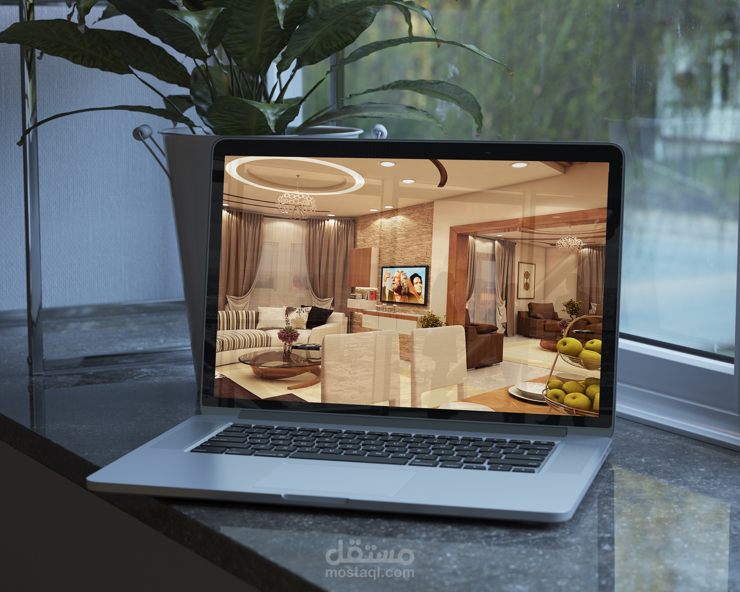 تصميم داخلي يمثل غرفة معيشة بطريقة معاصرة وإختيار الألوان المناسبة لها .