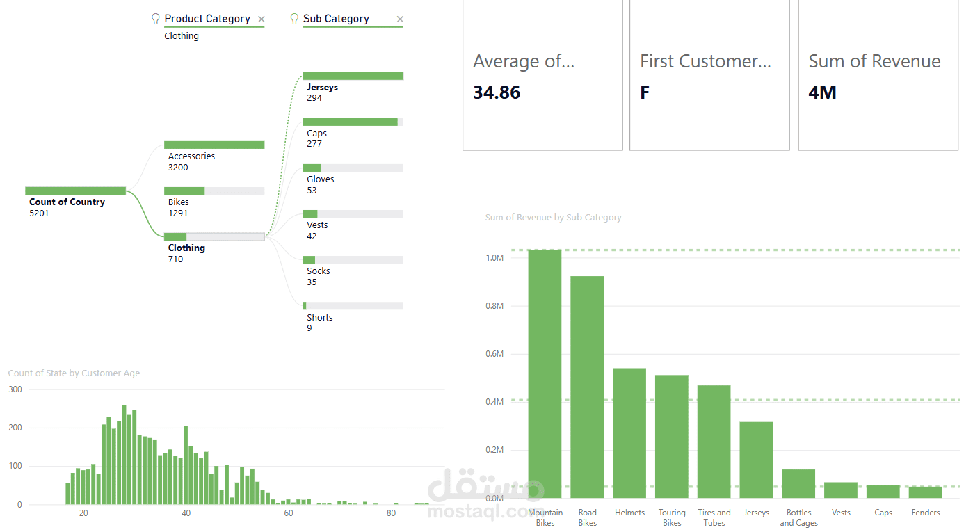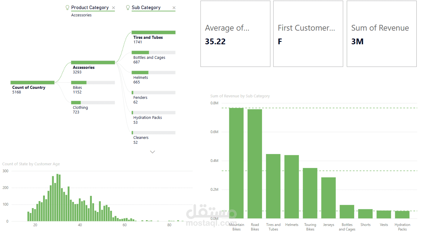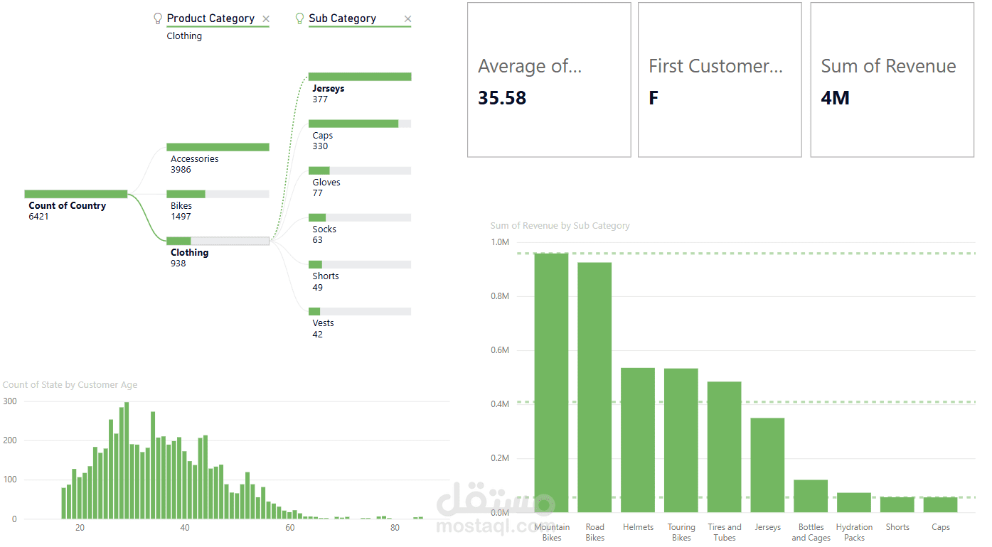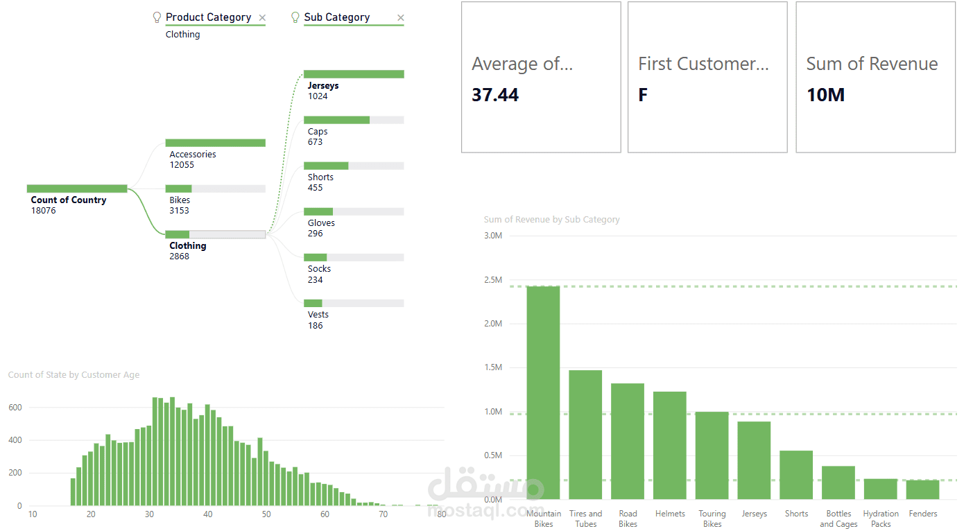 Performance insights by category (Bikes, Accessories, Clothing) to identify top-performing and underperforming segments.