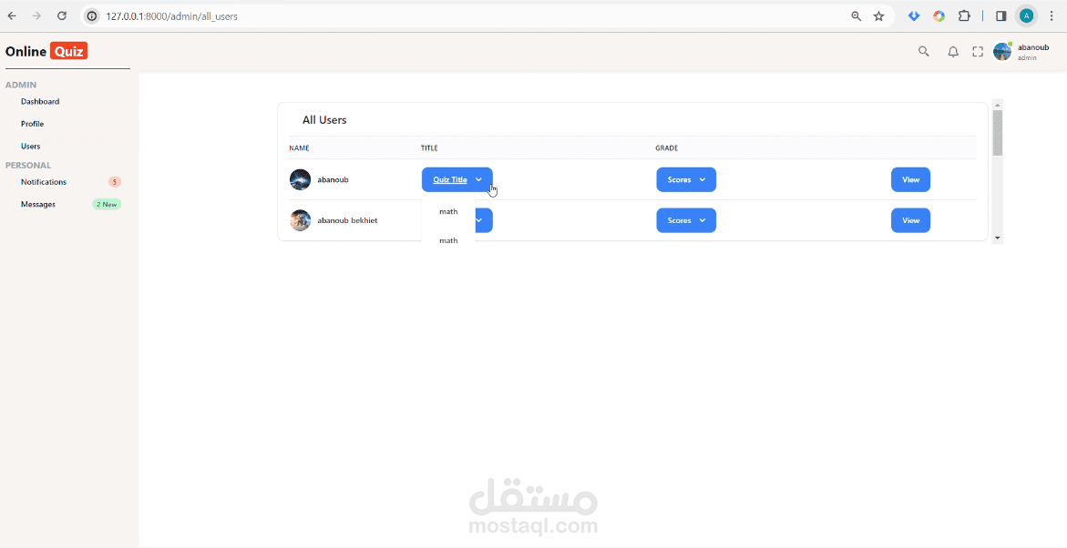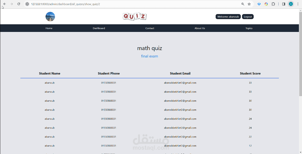 2-see all his or her students who took the quiz and their marks