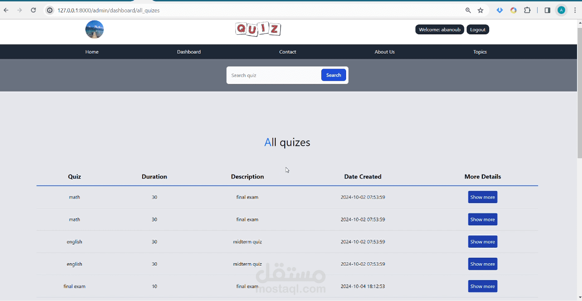 1-make a quiz with timer and true/false , multiple choices questions