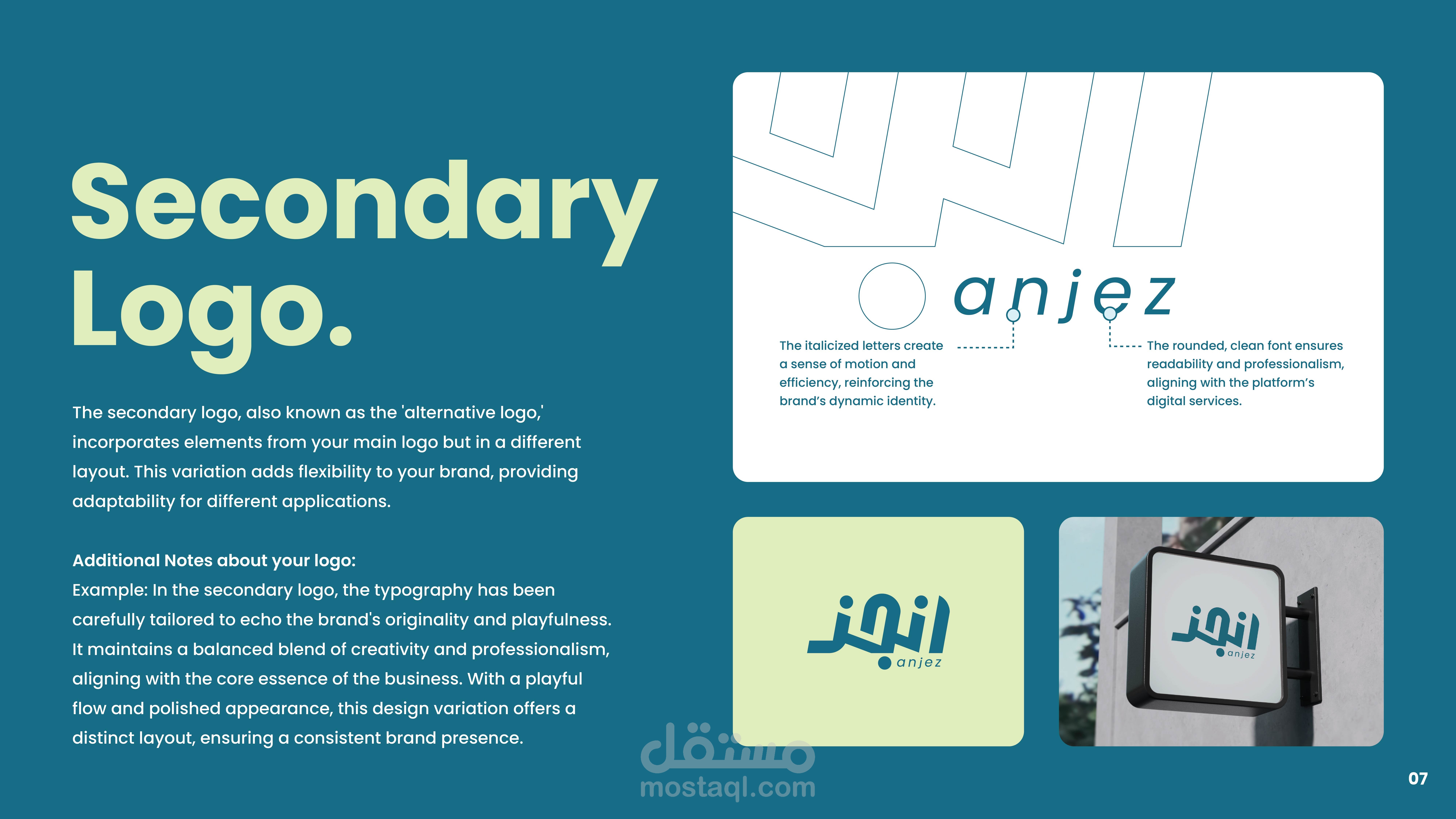 "أنجز" هي منصة تقدم خدمات أو حلول لإنجاز المهام بسرعة وكفاءة، سواء كانت خدمات استشارية، تقنية، أو إدارية. لذلك، الهوية البصرية يجب أن تعكس السرعة، الاحترافية، والموثوقية.