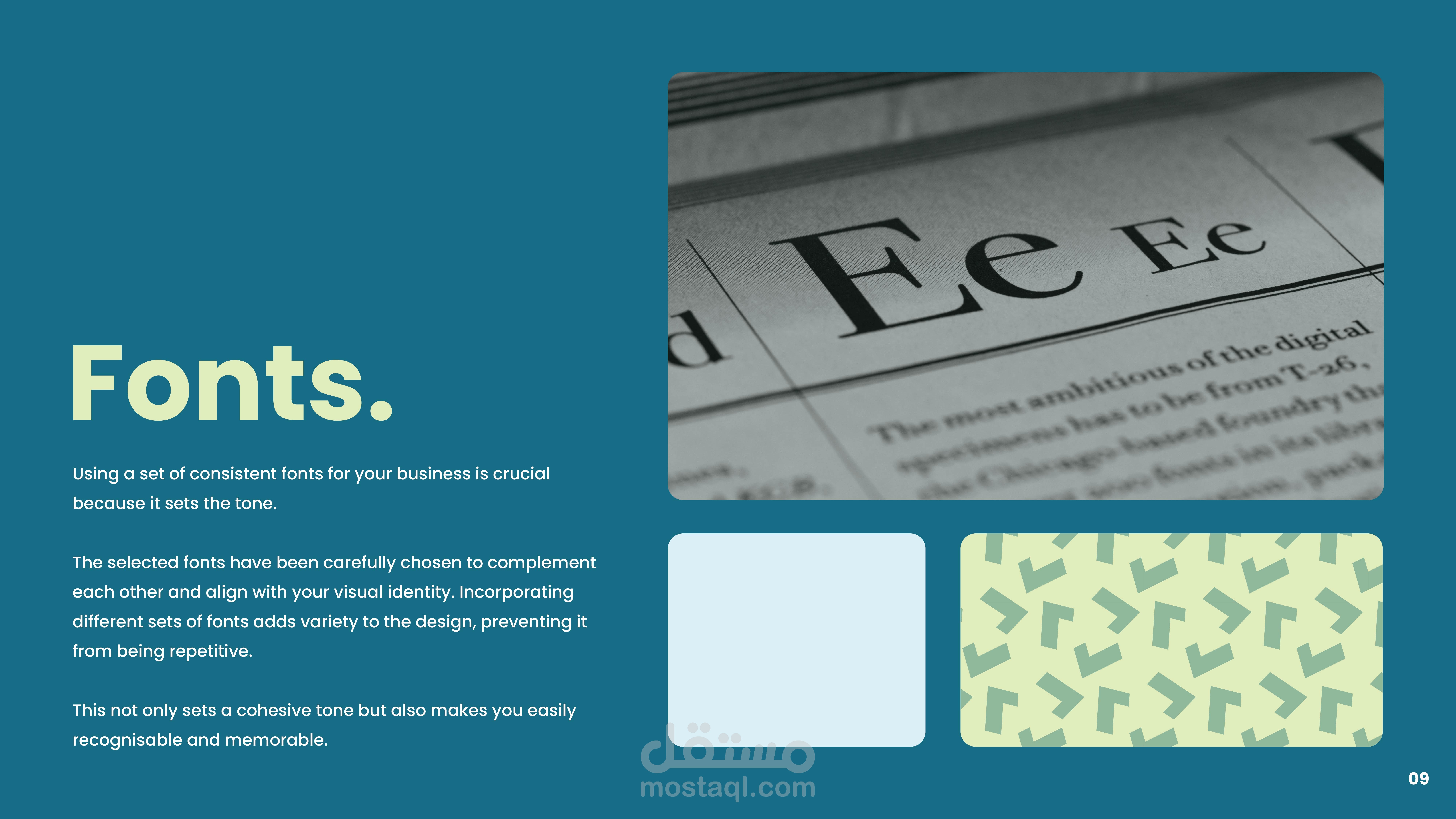 الخطوط: استخدام خط حديث وسهل القراءة ليعكس البساطة والوضوح.