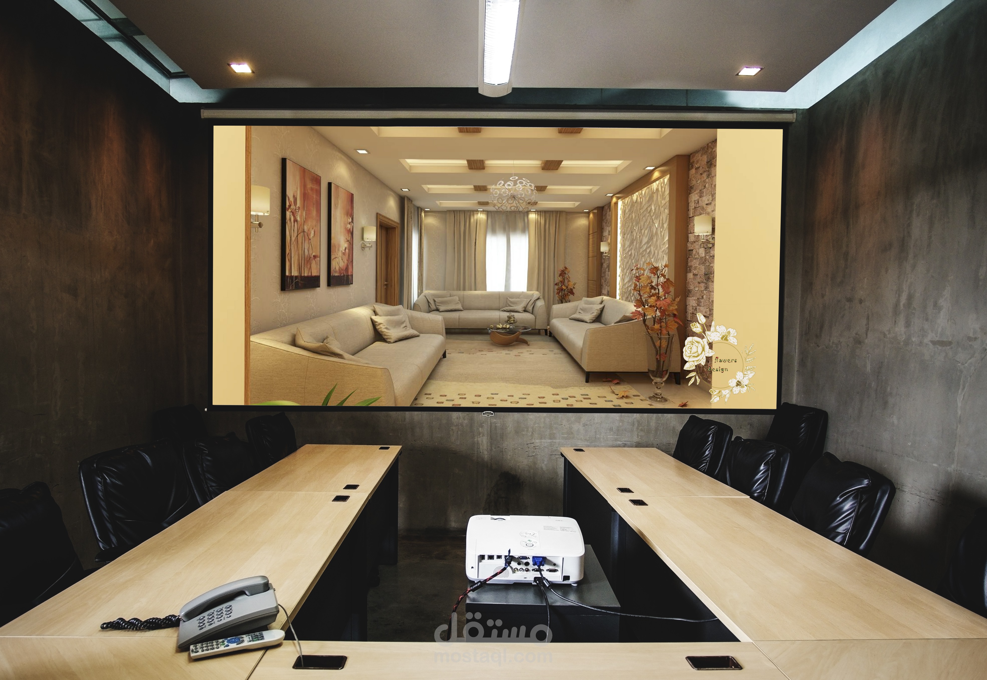 تصميم داخلي يمثل غرفة معيشة بطريقة معاصرة وإختيار الألوان المناسبة لها .