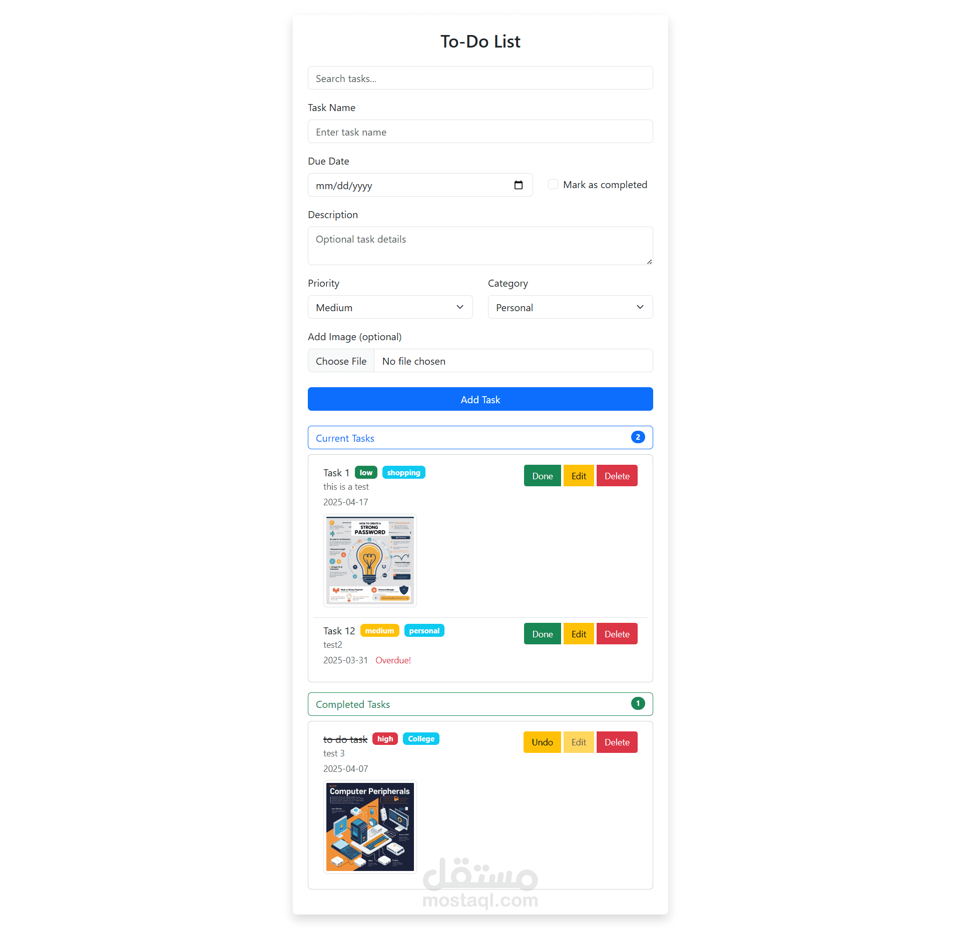 وظائف تفاعلية: تحديث المهام يتم فورًا دون الحاجة لإعادة تحميل الصفحة.