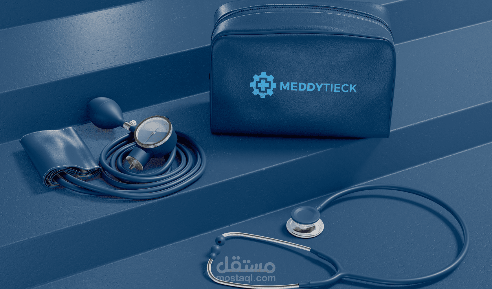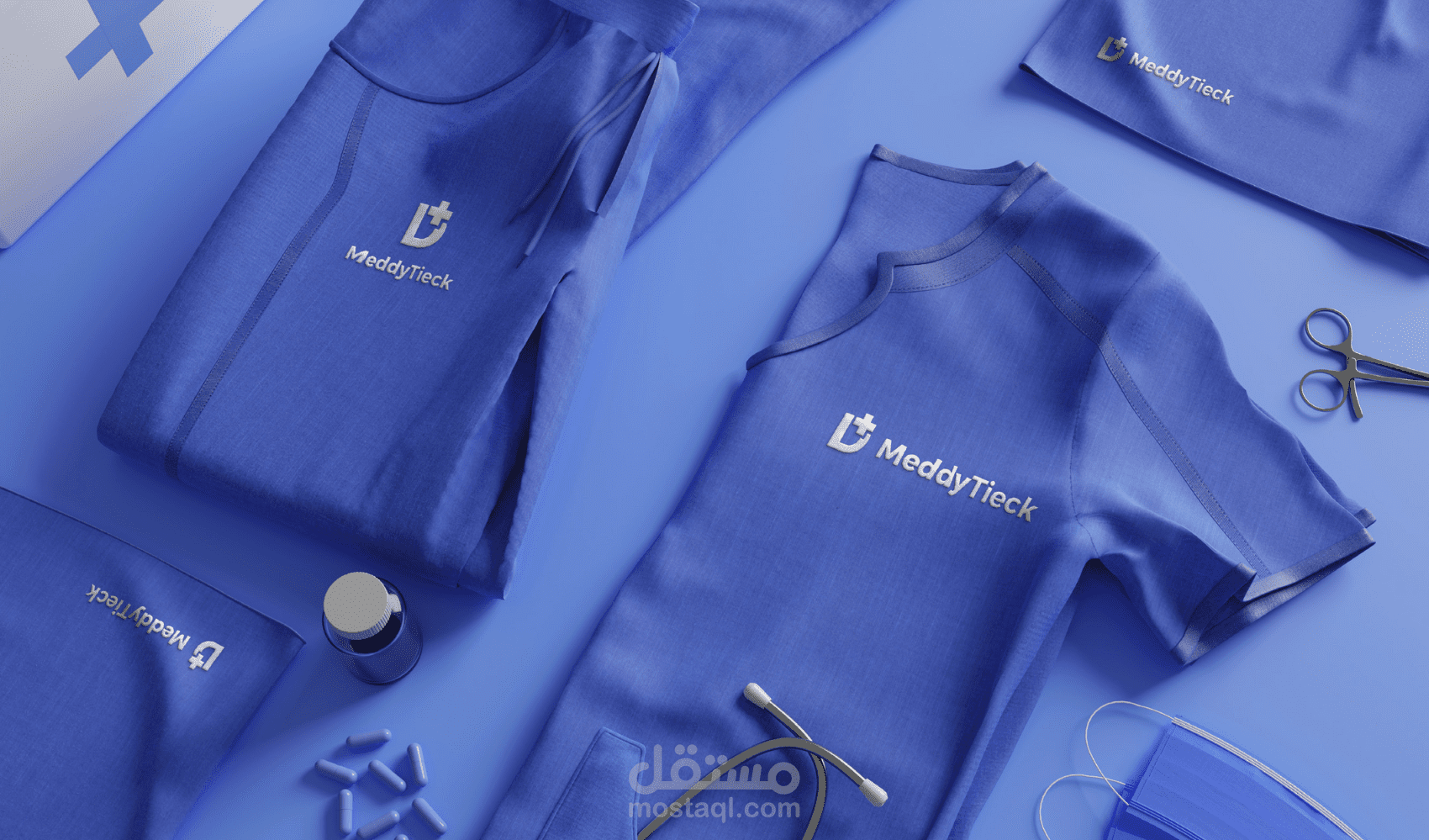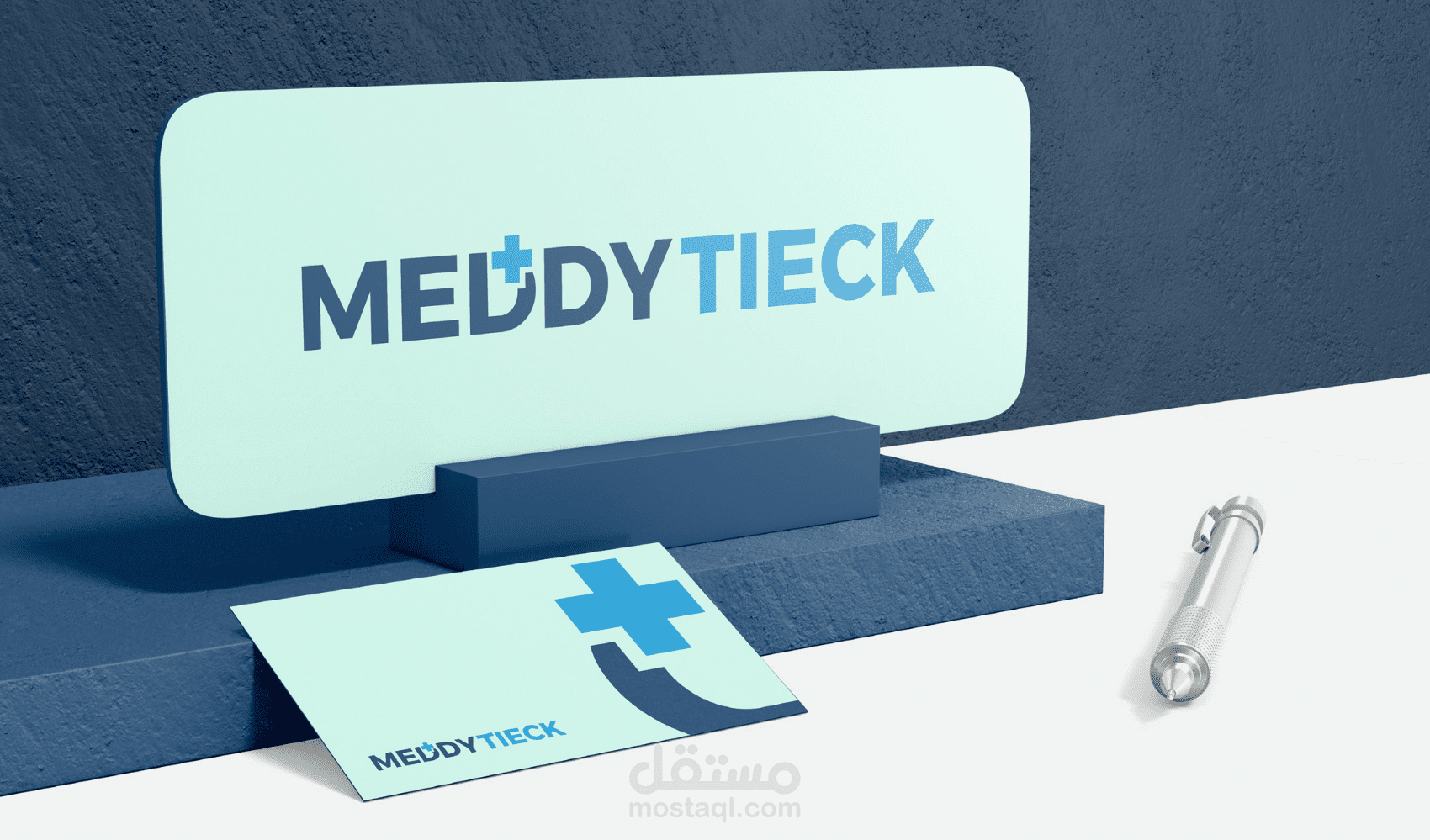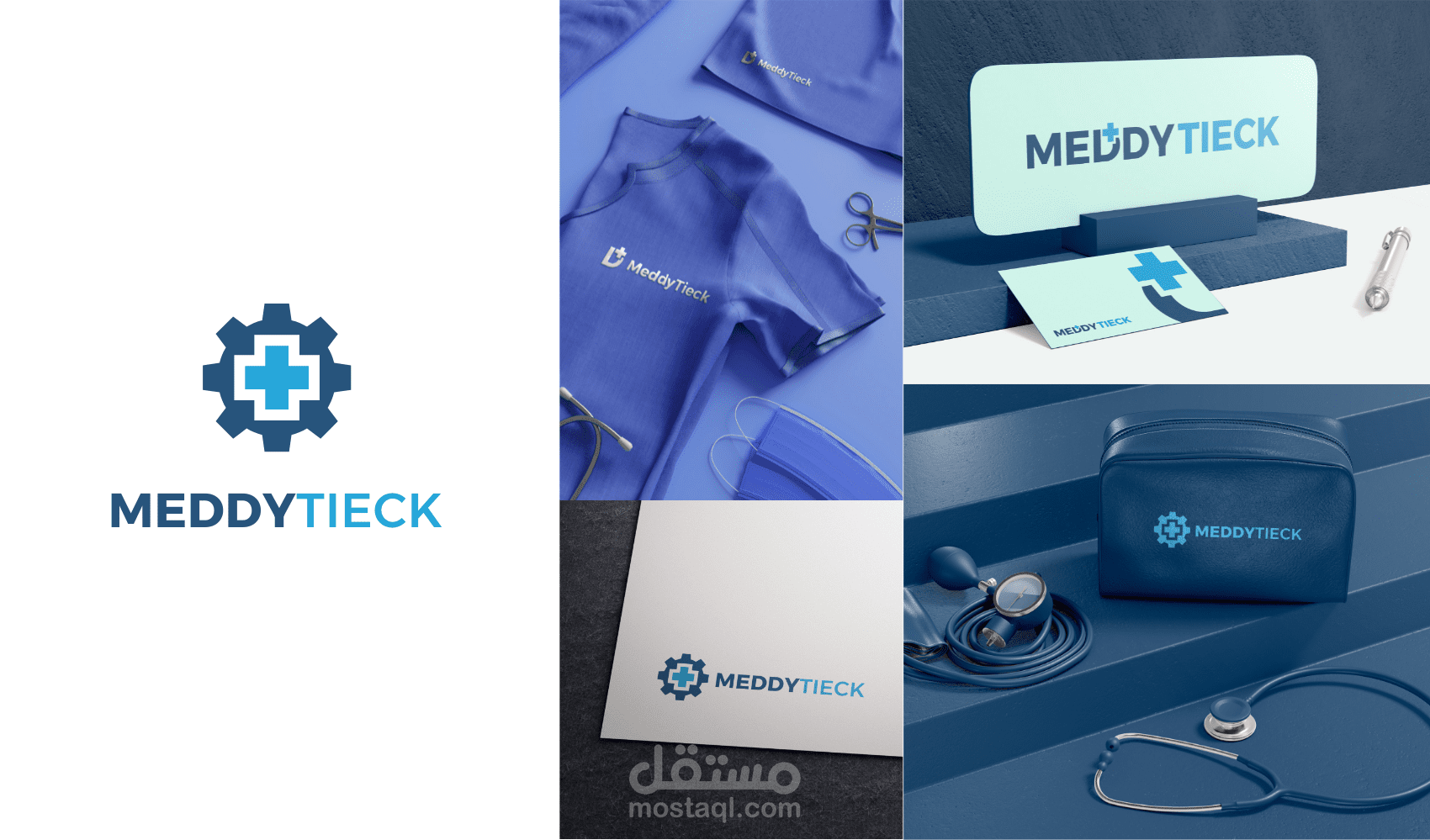 تصميم هوية بصرية احترافية لشركة MeddyTieck، وهي شركة متخصصة في المجال الطبي والتقني، حيث تم التركيز على الجمع بين العناصر الطبية والتكنولوجية في التصميم.
