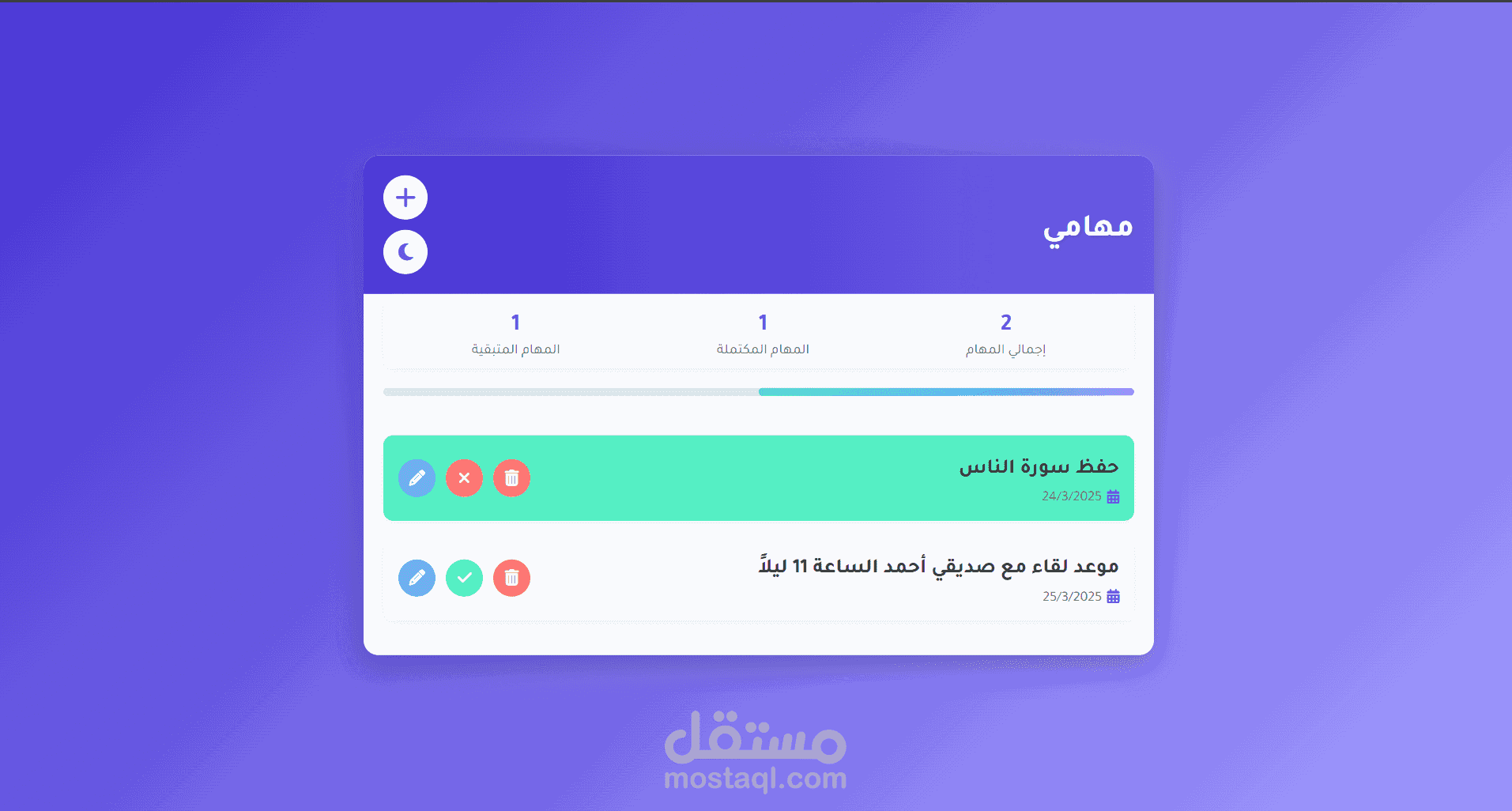 عرض المهام وتحديث حالتها (لم تبدأ – قيد التنفيذ – منتهية)
