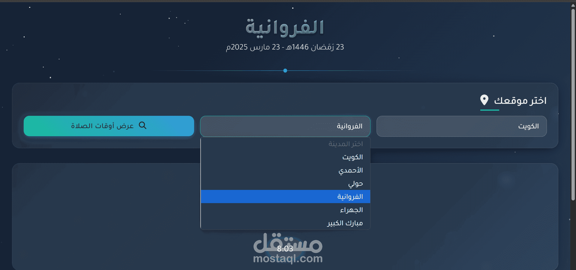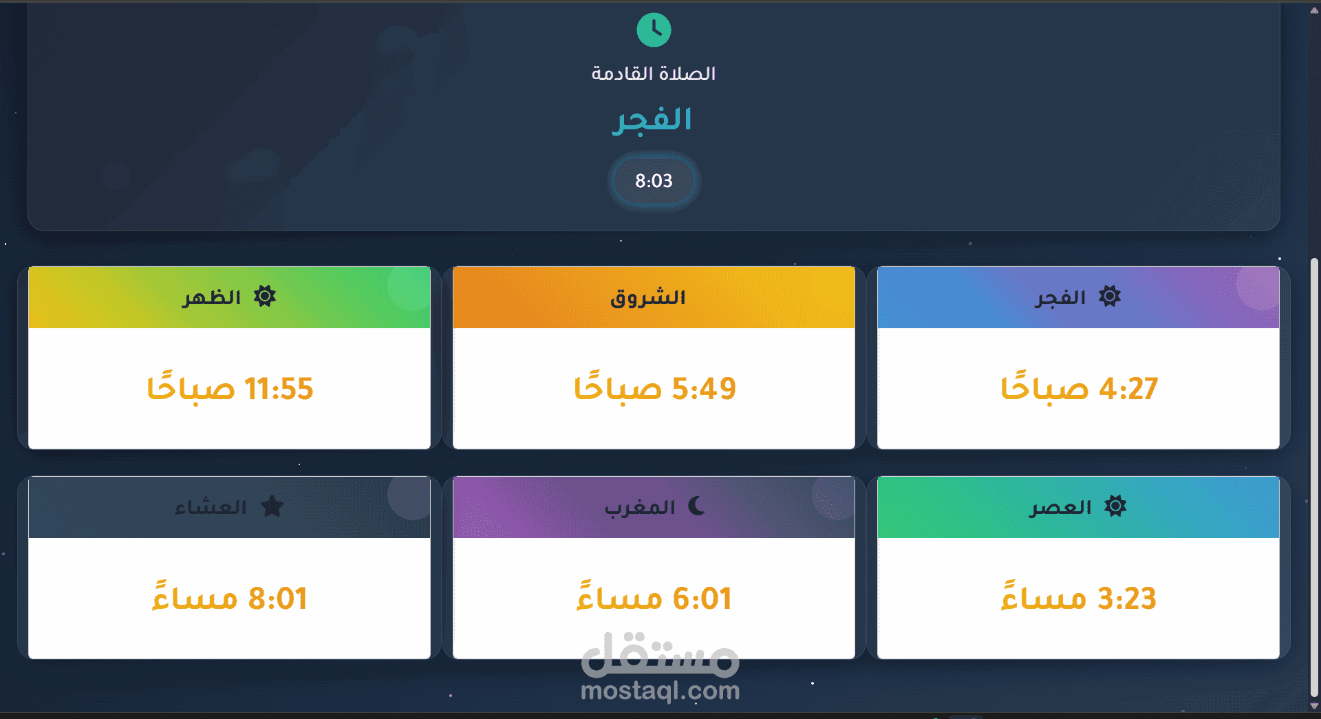 المشروع الأول: موقع مواعيد الصلاة للوطن العربي