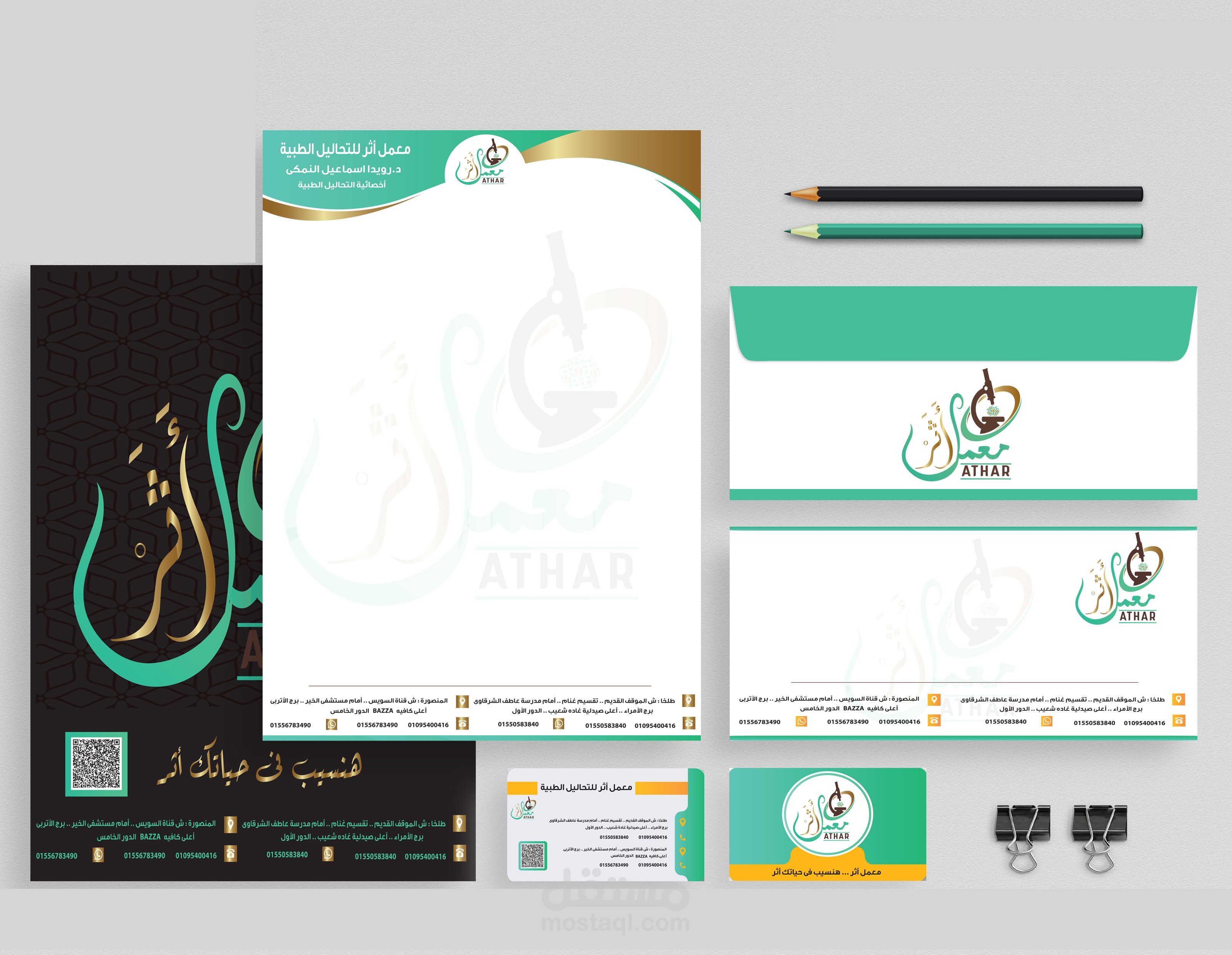 تصميم شعار و هوية بصرية لمعمل أثر للتحاليل الطبية