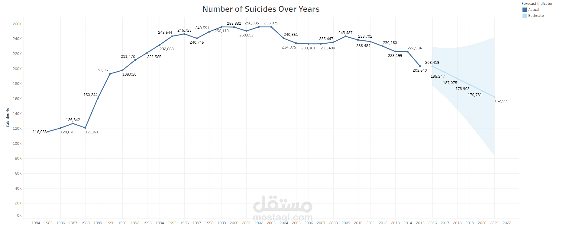 This project analyzes suicide rates from 1985-2016 using a Kaggle dataset, exploring trends across countries, gender, and age groups. After cleaning the data with Python (Pandas, NumPy), I conducted EDA and visualized findings with Tableau, revealing higher rates among men and regional variations. I also explored links with socio-economic factors like GDP. This work enhanced my data analysis skills and deepened my understanding of suicide trends, aiming to inform public health efforts.
