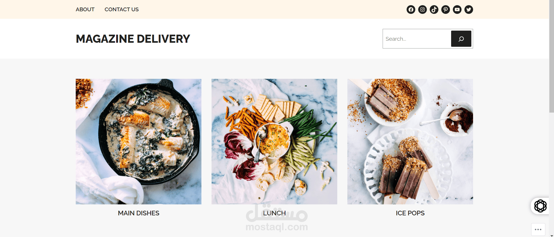 موقع لعرض كتاب طبخ به لينكات لصفحات التواصل الاجتماعي