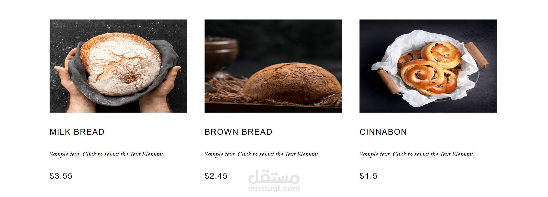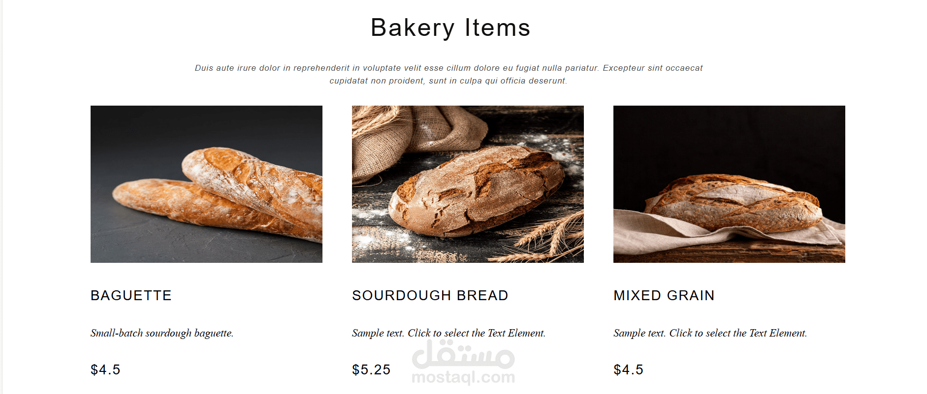 Bakery Items : A detailed list of baked goods, each with professional images and descriptions.