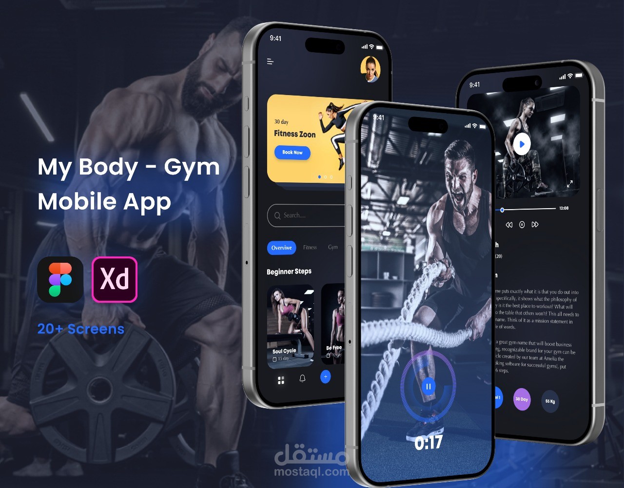 أقدم لكم تصميمًا احترافيًا لواجهة وتجربة مستخدم "My Body - Gym Mobile App"، وهو تطبيق مخصص لعشاق اللياقة البدنية يساعد المستخدمين في تحقيق أهدافهم الصحية من خلال تجربة سلسة وعملية.