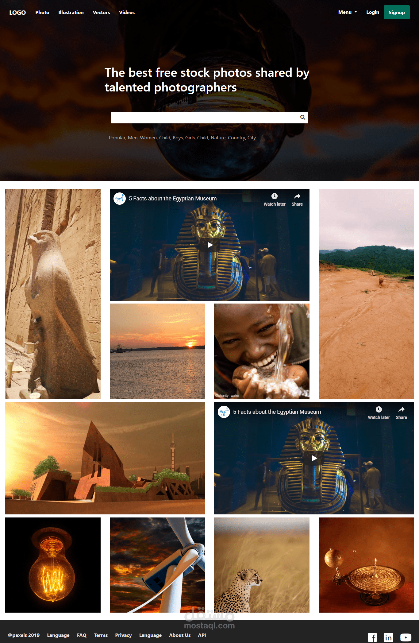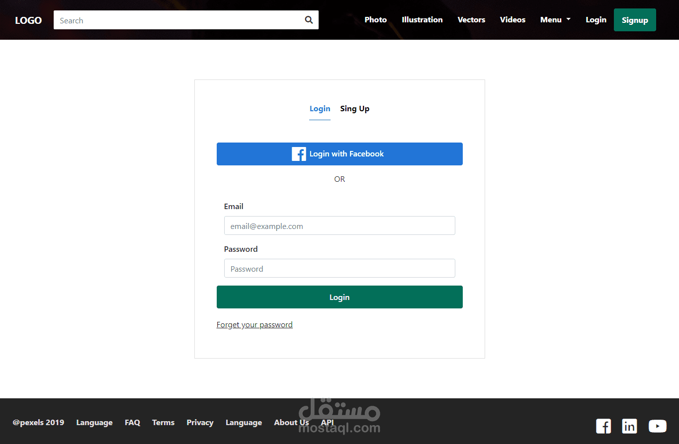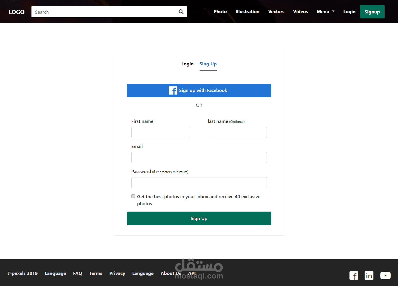 موقع Photography موقع جميل وبسيط لعرض الصور كما انه يحتوى على صفحة Login و Sign up