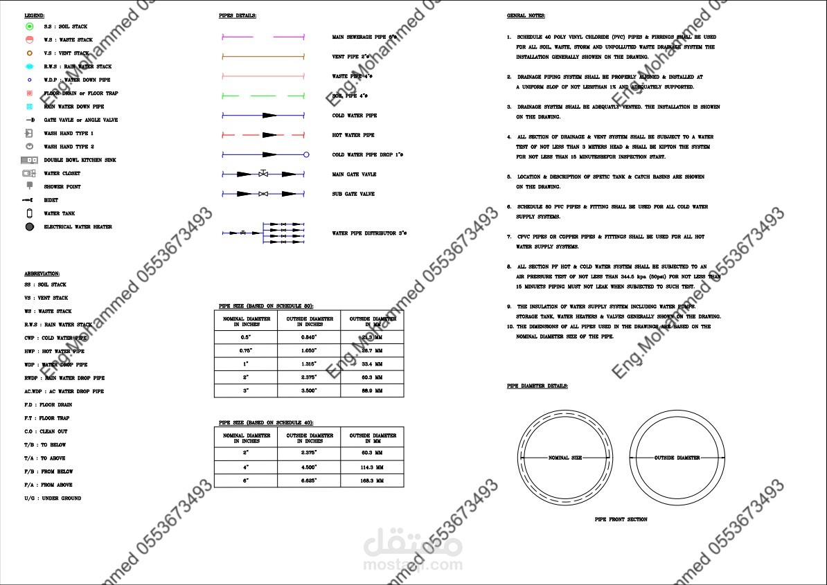 عينة من مخطط السباكة على الكود السعودي، يشمل على: