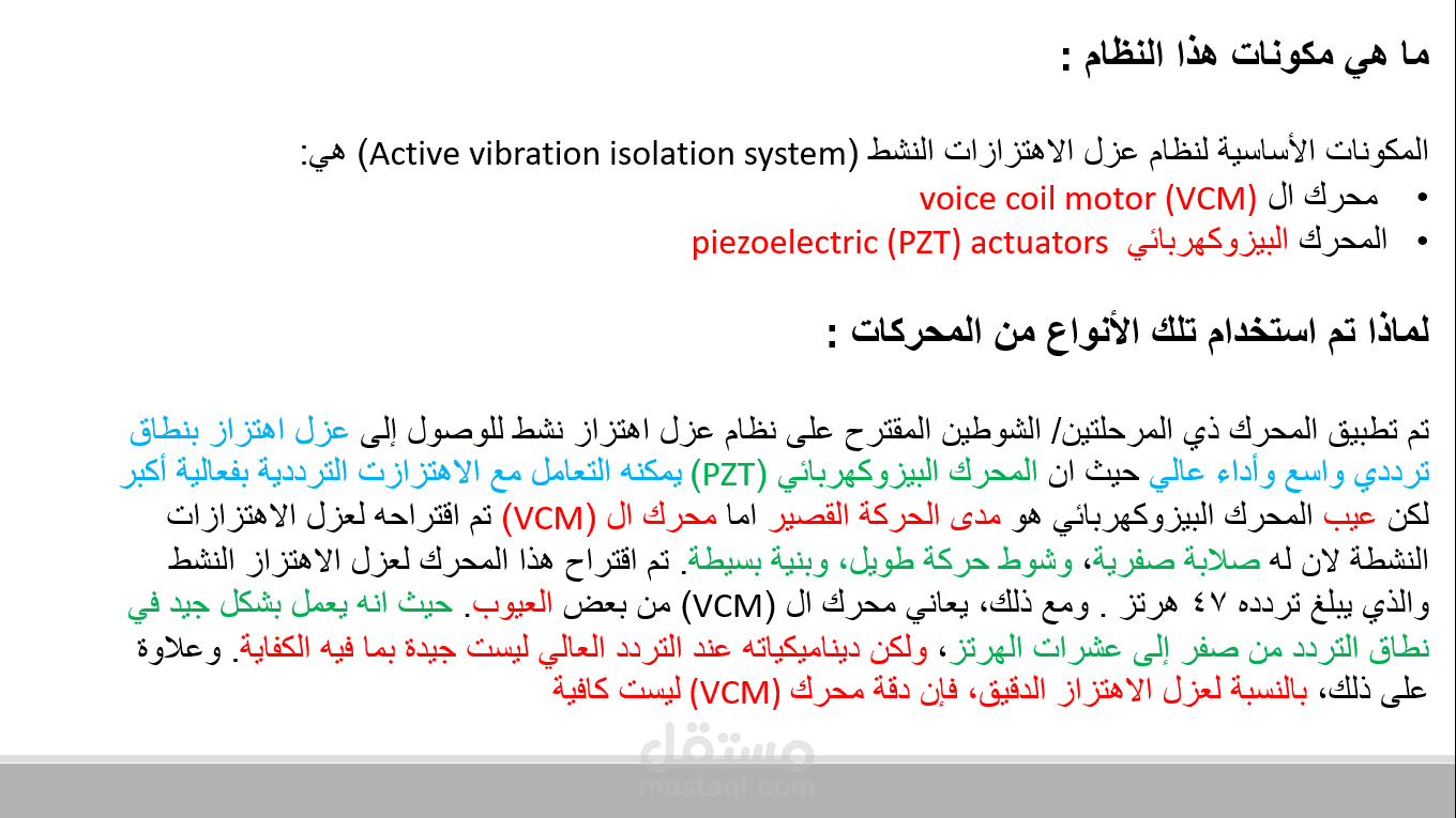 عرض تقديمي يتم فيه تقديم موضوع Design and Control of a Dual-Stage Actuation Active Vibration Isolation System باسلوب سهل وانيق وتصميم جذاب و غير معقد