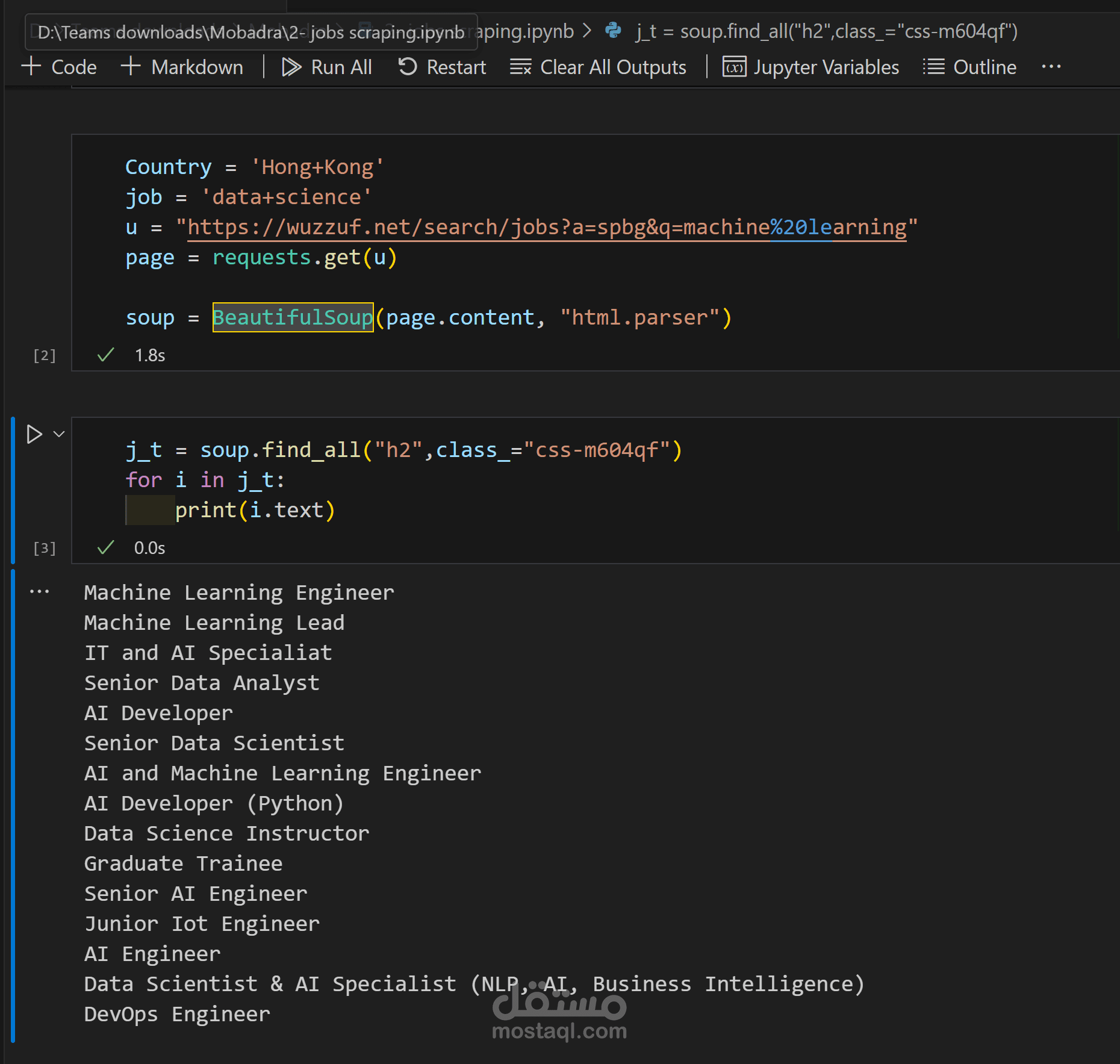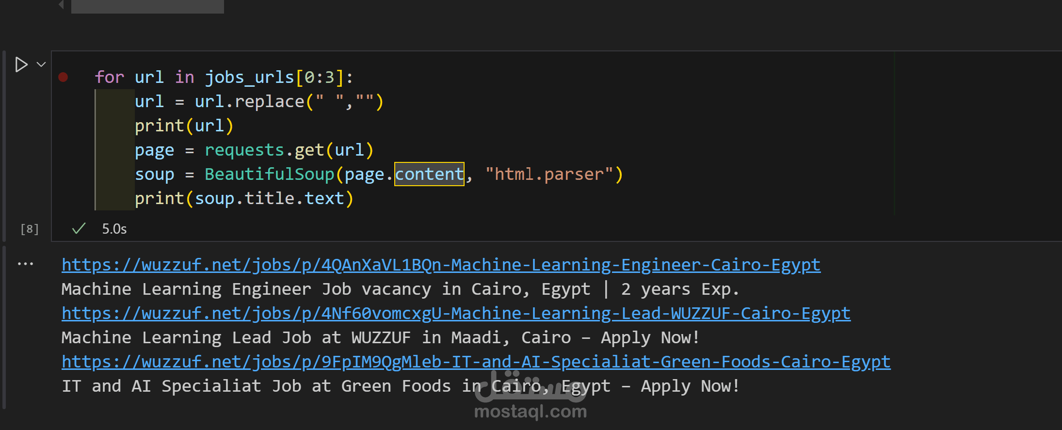 1-جمع البيانات من موقع وظف ورؤية جميع الوظائف المتاحة