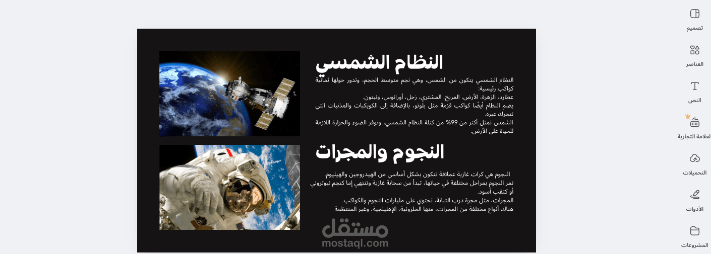 محتوى تعليمي شامل: يقدم معلومات دقيقة عن الفضاء بطريقة واضحة وسهلة الفهم.