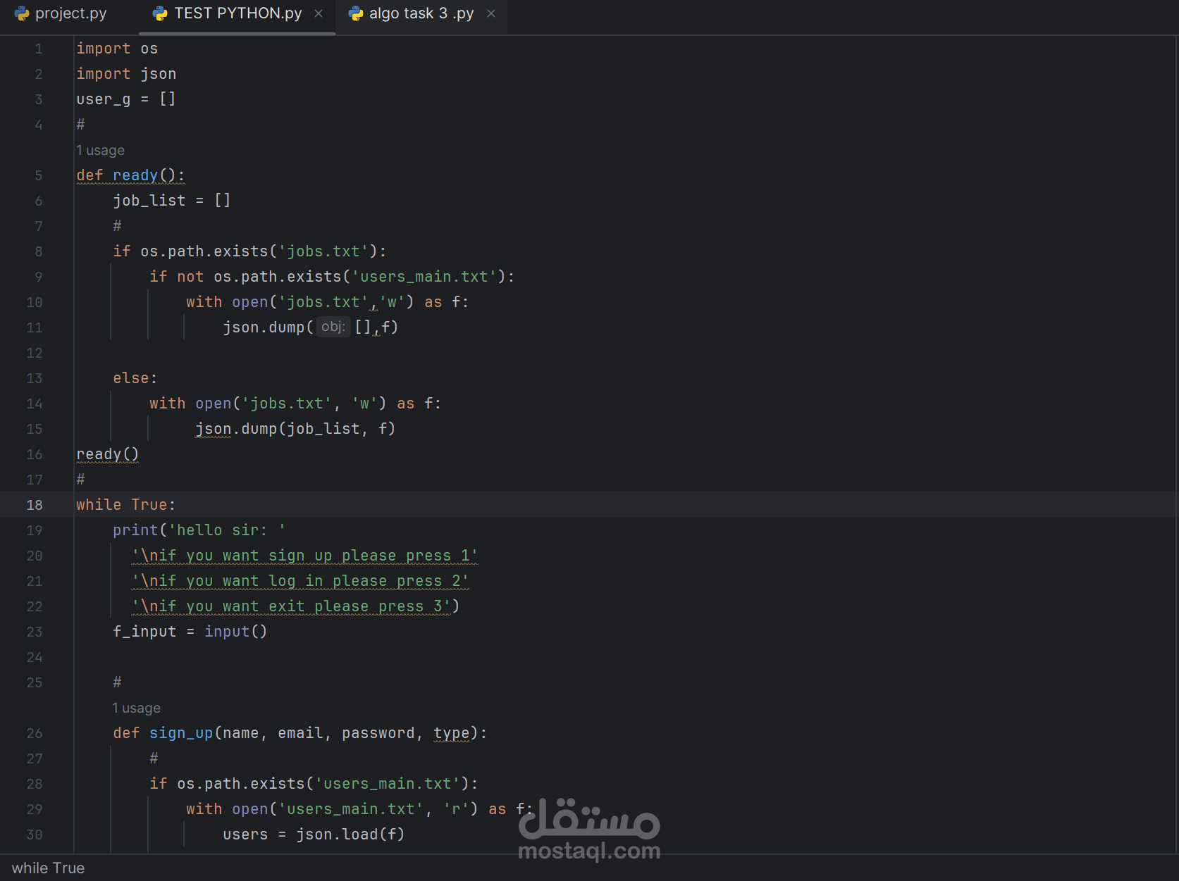 This project is a freelance job board system that allows clients to post job offers and freelancers to apply for them. The system is built using Python and stores data using JSON files instead of a database.