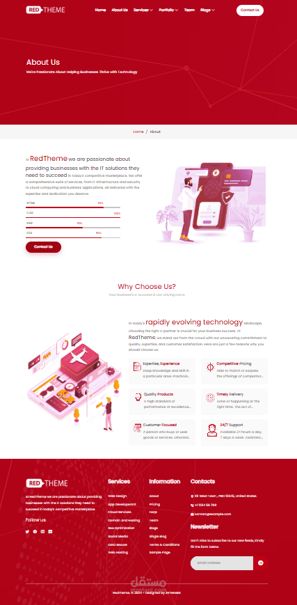 تم تطوير موقع Company Profile (الملف التعريفي للشركة) كمنصة تفاعلية لعرض هوية الشركة، وخدماتها، وفريق العمل، والمشاريع السابقة، ووسائل التواصل. الموقع مصمم ليكون سريع الاستجابة (Responsive) ويتوافق مع جميع الأجهزة، مع واجهة مستخدم جذابة وسهلة التصفح.