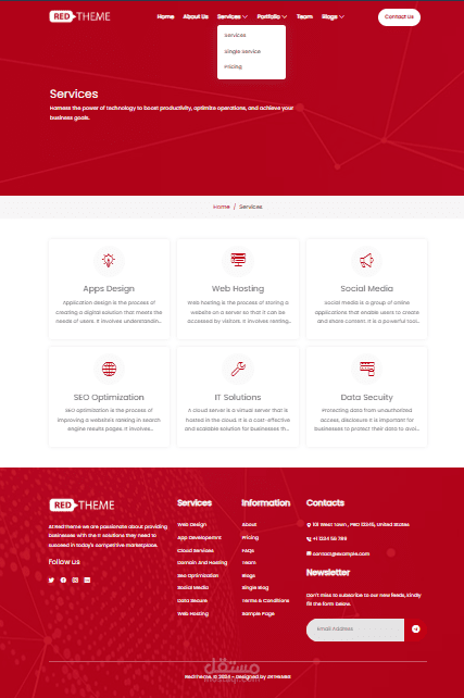 قسم "الخدمات" مع بطاقات توضيحية (Cards).