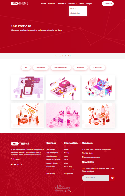معرض أعمال (Portfolio) مع تصفية حسب الفئة (Filtering).
