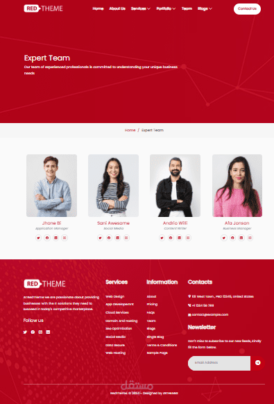 قسم فريق العمل مع صور وخبرات الموظفين.