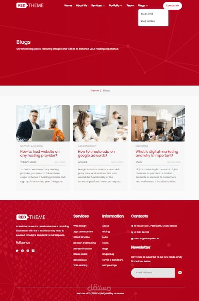Modals لتوسيع تفاصيل الخدمات أو فريق العمل.