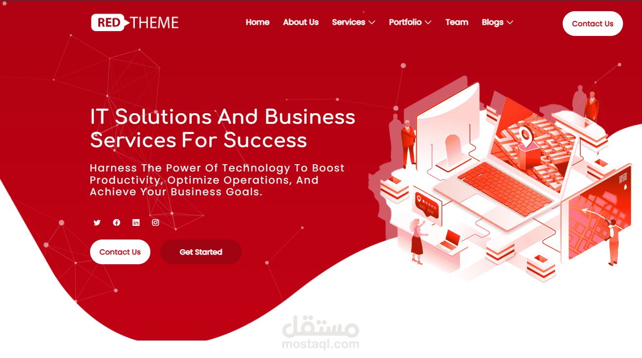 استخدام مكونات (Components) قابلة لإعادة الاستخدام مثل Header، Footer، ServiceCard، وTestimonials.