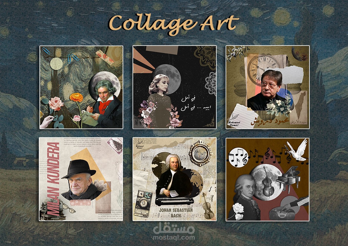 تصاميم بنمط الكولاج تعني تصاميم تعتمد على دمج وتركيب عناصر مختلفة مثل الصور، الألوان، القصاصات، والخطوط لإنشاء تكوين فني متكامل. يتميز هذا الأسلوب بأسلوبه الإبداعي والحر، حيث يتم الجمع بين عناصر متباينة بصريًا بطريقة متناسقة لإنتاج عمل فني جديد يحمل دلالات ورموز متنوعة.